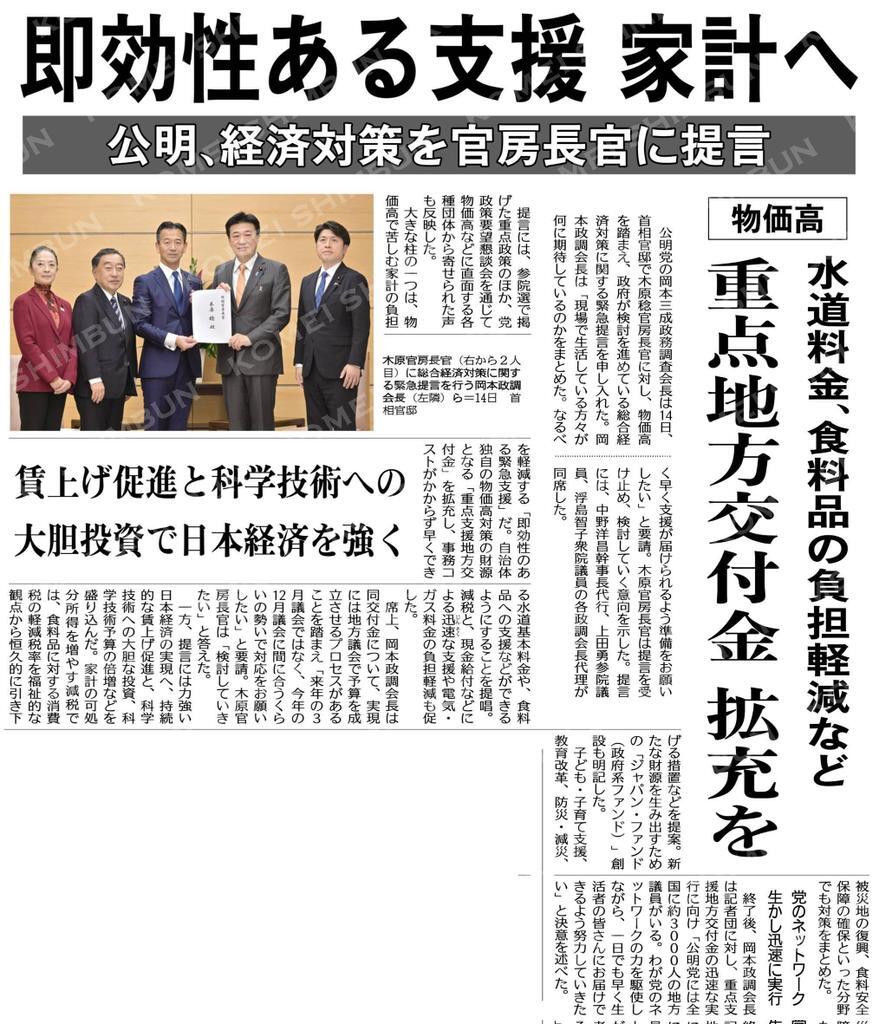 #公明党がいる安心 #RICE #大衆とともに #小さな声を聴く力 (公明、経済対策を官房長官に提言)即効性ある支援、家計へ/重点地方交付金、拡充を/物価高に水道料金、食料品の負担軽減など #公明新聞電子版 2025年11月15日付 komei.or.jp/newspaper-app/ pic.x.com/0qqQOYqtC2