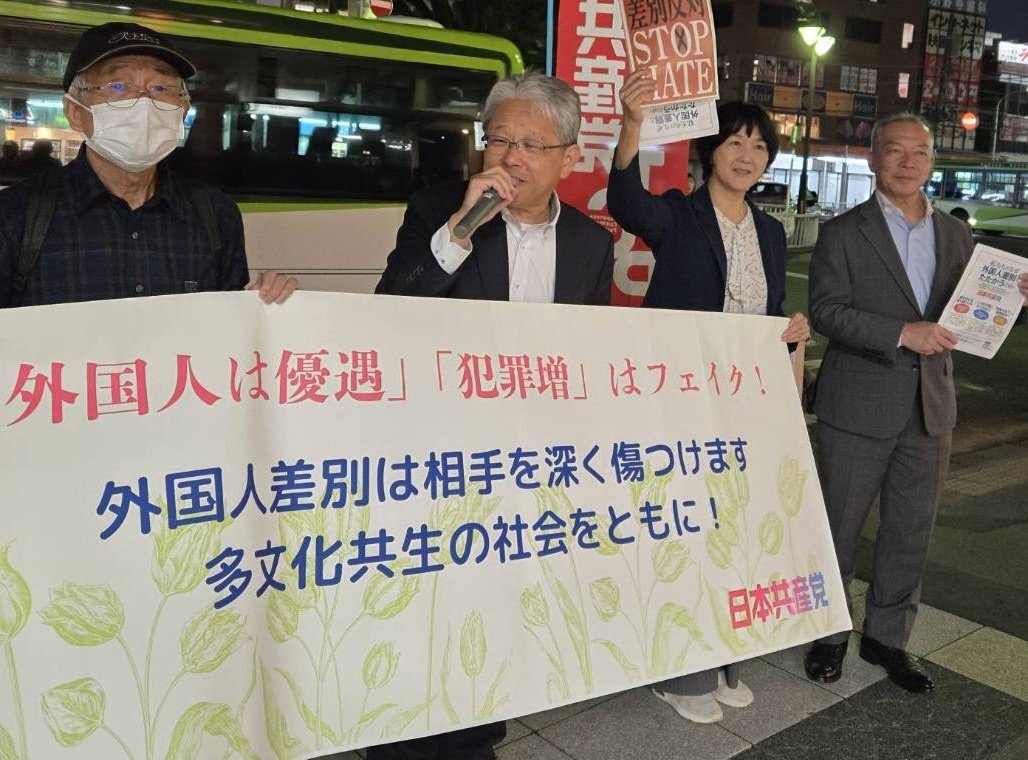 蕨駅で、「ヘイトスピーチ反対、差別をなくしましょう」とスピーチに立ちました。 「ありがとうございます」とチラシを受け取る女性の多さを感じました。 「外国人もまともに暮らせる社会をつくれば、税収も増えるし、多種多様な仕事が支えられ、回ります」。