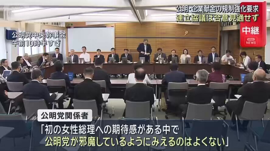 公明党関係者 「初の女性総理への期待感がある中で公明党が邪魔しているようにみえるのはよくない」