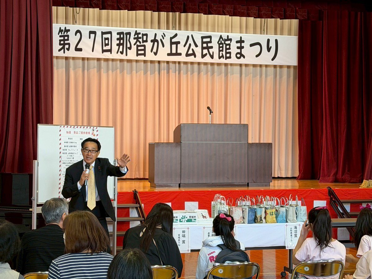 #名取市 の #第27回那智が丘公民館まつり でご挨拶… フィナーレの #大抽選会 は、老若男女大盛り上がり… 暖か〜い雰囲気が伝わってくる、#公民館まつり でした…。 ^_−☆ pic.x.com/GxA3IhnpmX