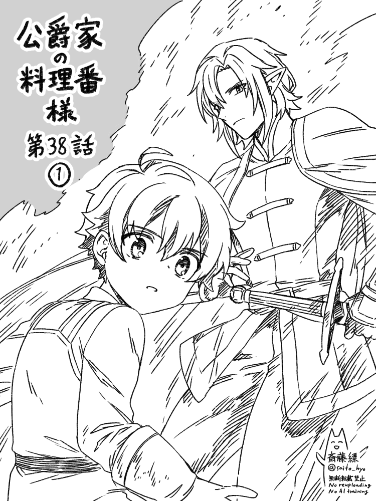 カリムとルーシェルが活躍する回を作りたくて、今回の話を考えたので、この二人のツーショットは嬉しい! 斎藤先生、ありがとうございます! 最新話がヤンマガWEBで更新中ですよ! #公爵家の料理番様 x.com/saito_hyo/stat…