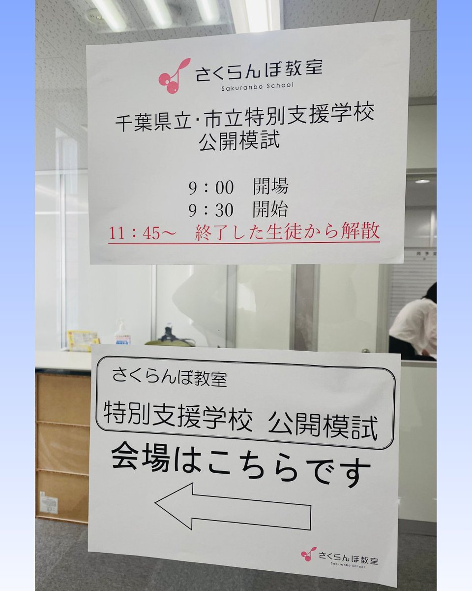 明日はさくらんぼ教室🍒千葉県立・市立特別支援学校 第3回公開模試!千葉エリアの各教室+外部会場(会議室Kouwa)で約230名が受験予定です👍受験生の皆さん、会場でお待ちしております。 #さくらんぼ教室 #公開模試 #千葉 pic.x.com/7KMxNeuFdf