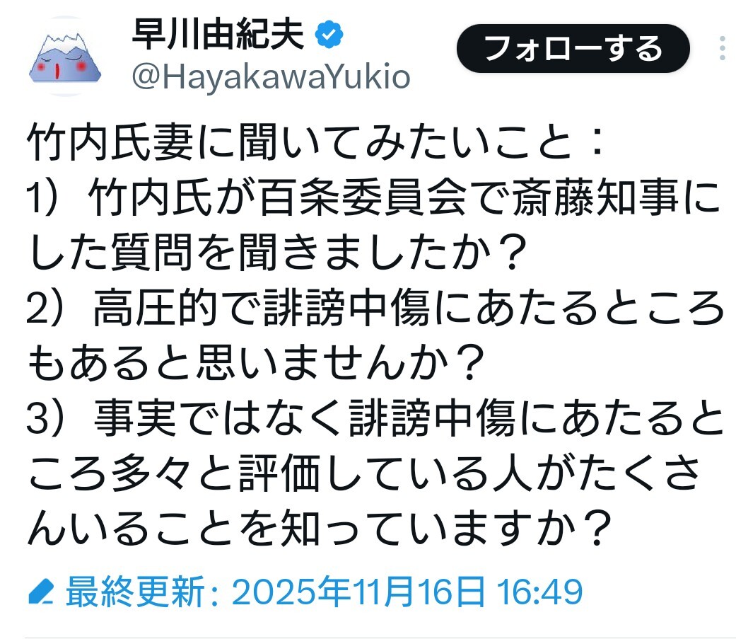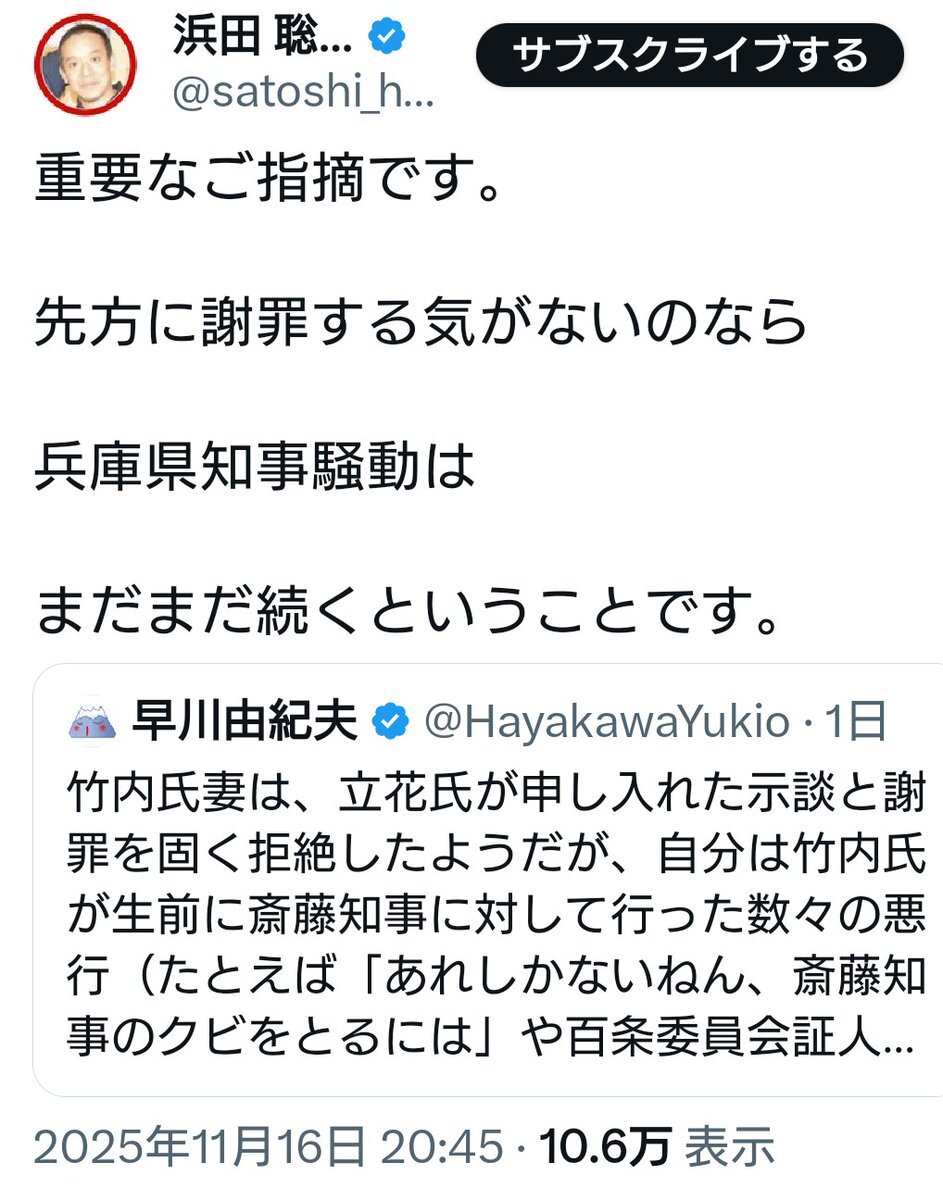 今度は #浜田聡 による #犬笛 かよ? 今度のターゲットは… #竹内元県議会 の奥さんらしい… クズが… 人の心がねぇのかよ. #兵庫県知事騒動 #NHK党 (#立花孝志)#反社会的カルト集団 #斎藤健一郎 #斎藤元彦 (#さいとう元彦) pic.x.com/E2vLE8wrZw x.com/saa_hatena/sta…