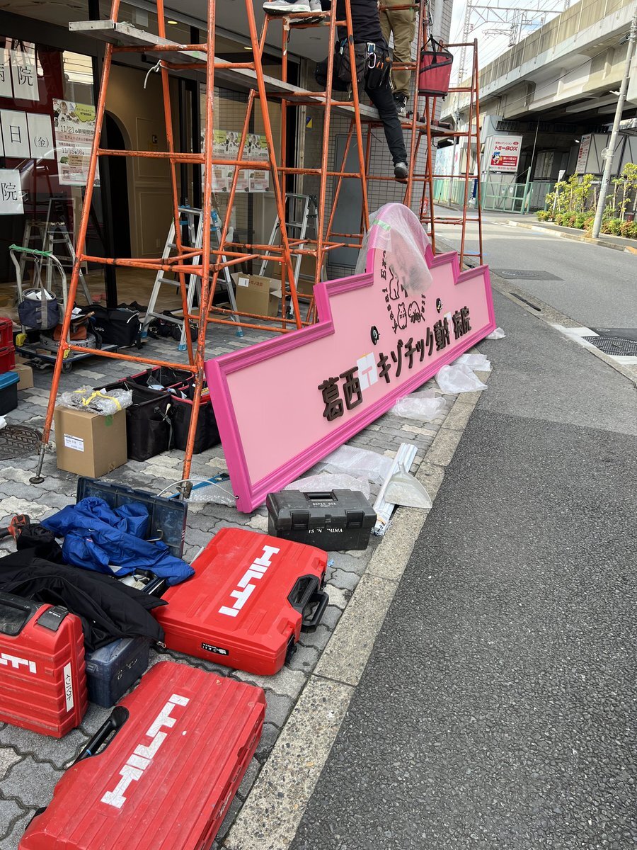 いよいよ看板がつきます! やることに追われて、バタバタとワクワクとドキドキが盛りだくさんです😂 当日皆さんにお会い出来ること楽しみにしています🏥👩🏻⚕️ #動物病院 #新規開院 #内覧会 #エキゾチックアニマル #葛西 pic.x.com/tKxO9OLxxW