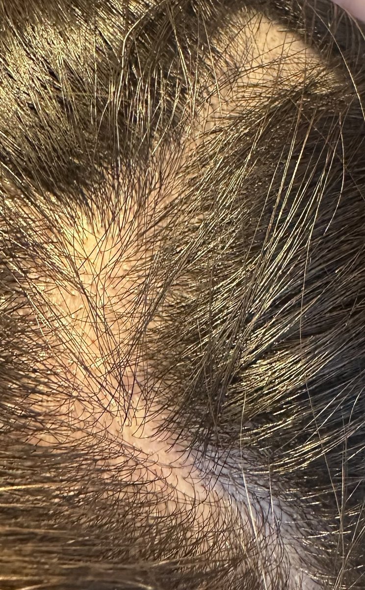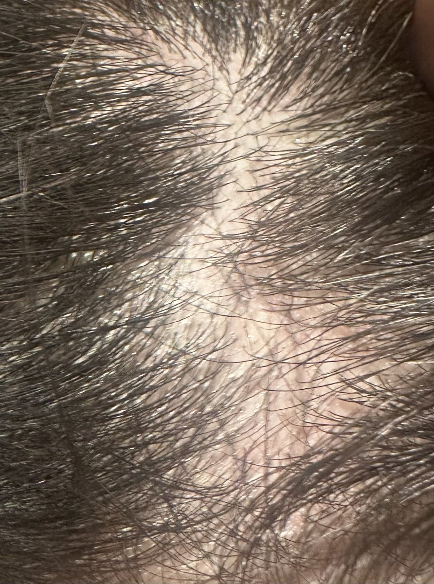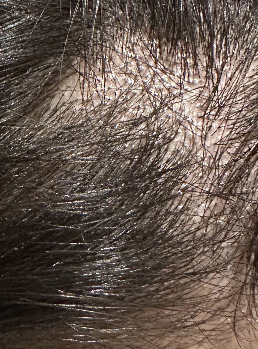 245日目。 おでこ付近のチビハゲ。 小さーく生えてるの見える😊 今日は久しぶりに髪の毛結ばないで仕事行ったけど、前よりアホ毛が落ち着いたのか、いい感じで一日を終えれた😭❤️ おろした髪はスカスカだけど、ずっと髪の毛結ぶの嫌だったな😇 一歩ずつ良くなることを諦めない! #円形脱毛症 #ハゲ pic.x.com/cAV8zufYWN