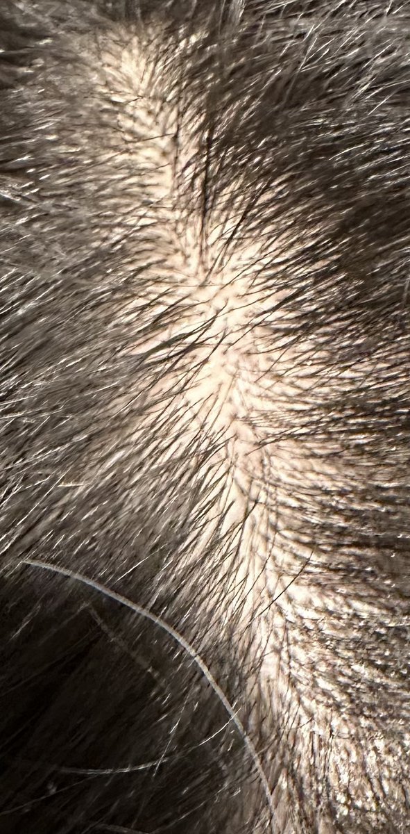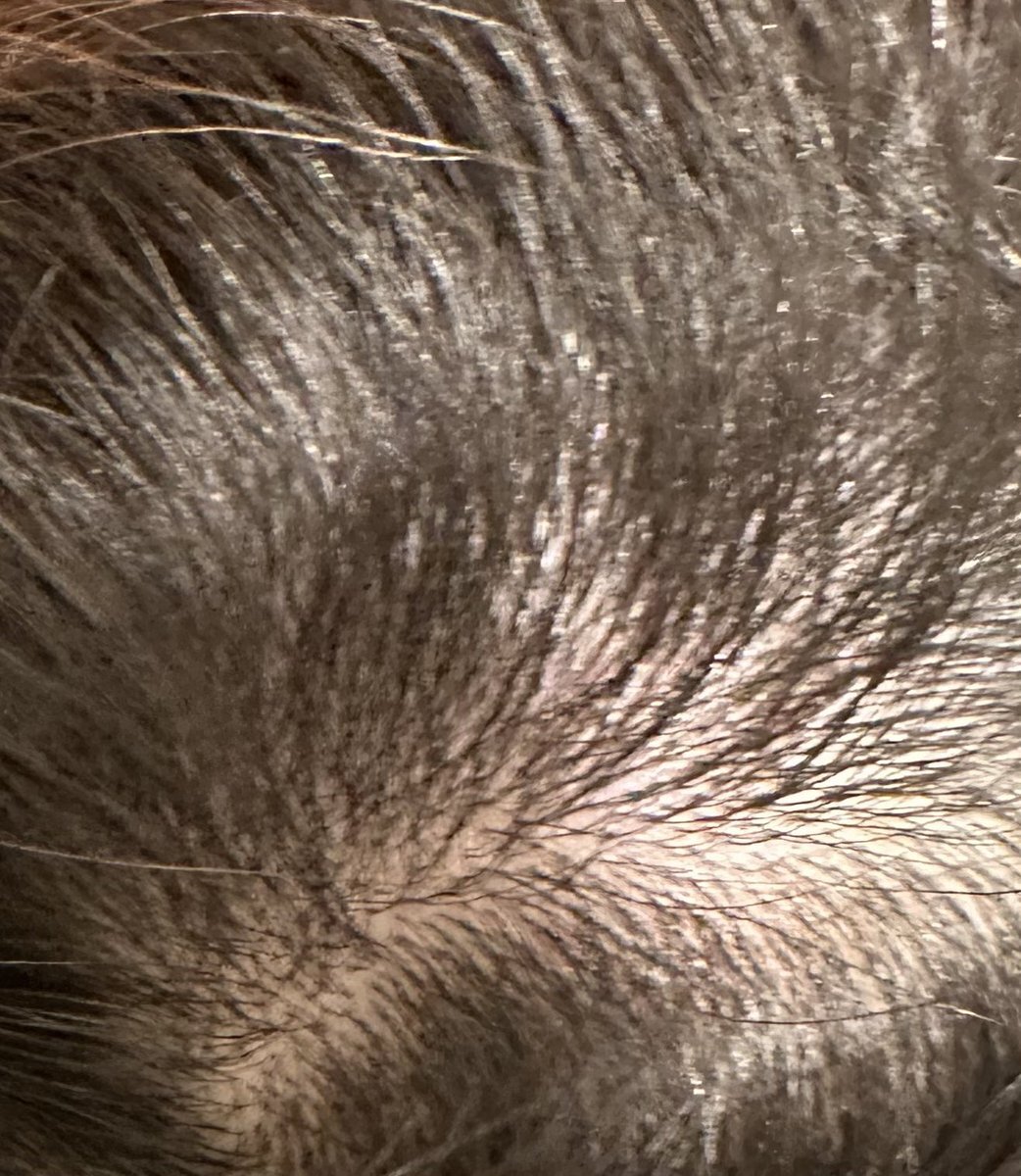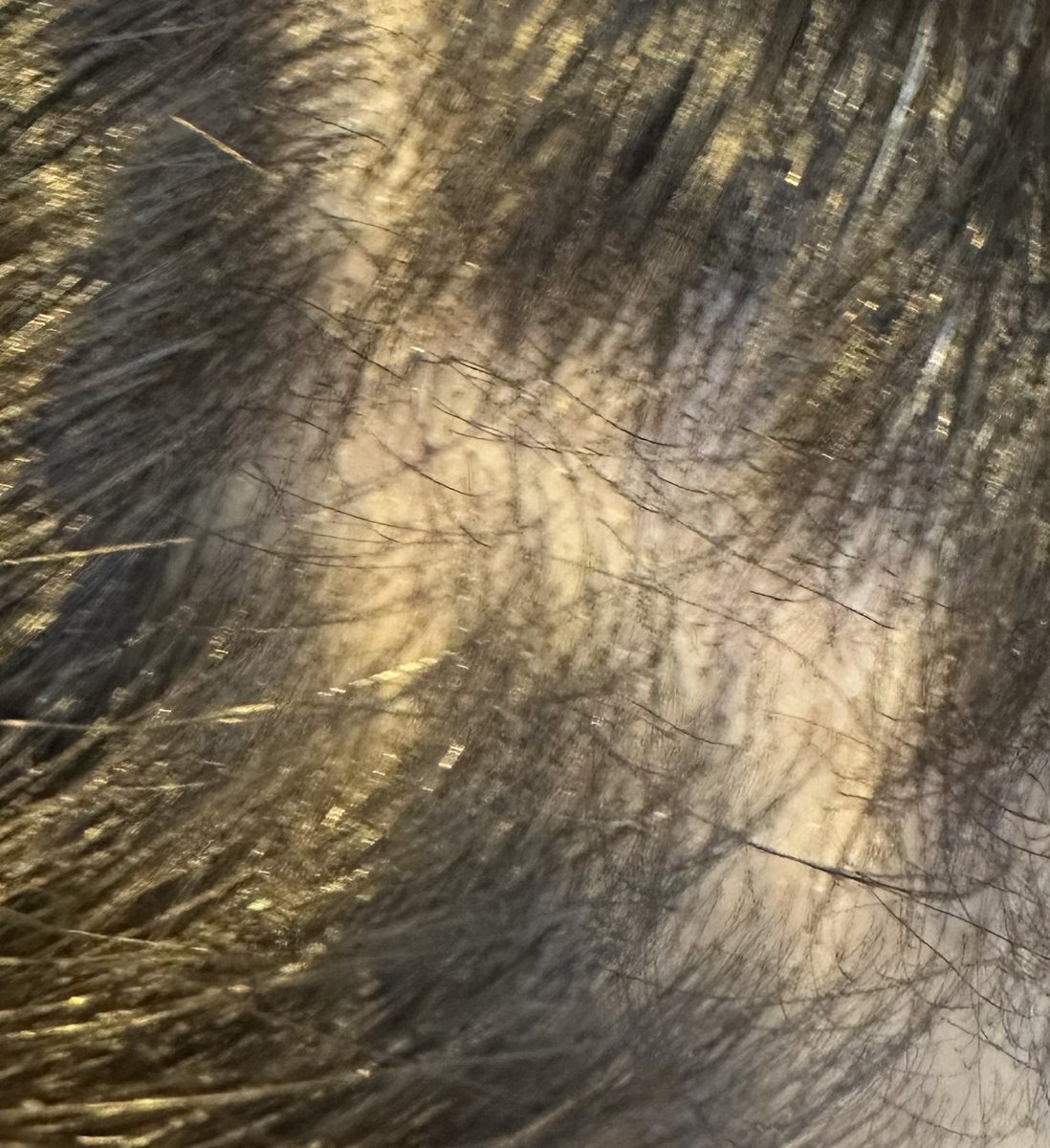 254日目。 おでこ付近の写真撮ってた時、薄いとこ見つけて、(多分前もこんなの撮った気がする)結構な薄さに久々衝撃🫨 ちゃんと色々観察しないとな😇 アホ毛ぴょんぴょんも早く治ってほしい😂 元気過ぎるw #円形脱毛症 #ハゲ pic.x.com/HAj1vFgVCu