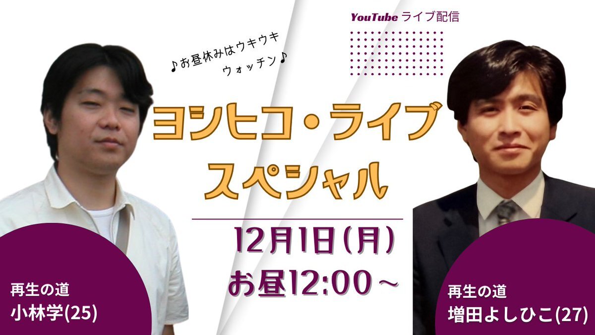 《ヨシヒコ・ライブSP with 小林学さん》 明日、12月1日(月)お昼12:00〜 youtube.com/live/p7P7LlMaR… 再生の道から、参院選で奮闘された小林学さんをお迎えします🎉 【こんな話が出そうです】 ・稼ぐ必要のないほど稼げるようになる秘訣 笑 ・eモータースポーツは仕事か趣味か