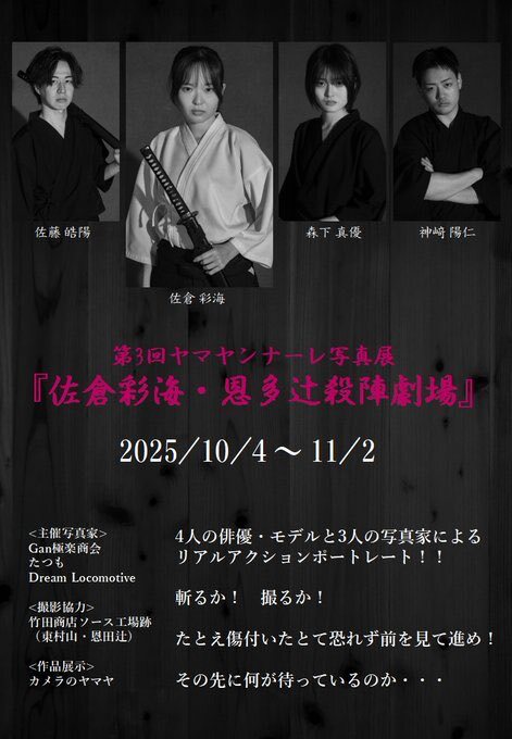 📣展示情報 10/4-11/2 #佐倉彩海恩多辻殺陣劇場 (第3回ヤマヤンナーレ写真展作品モデル) 10/11-13 #写真展4人のまるさんかくしかく (marchさん作品モデル) 10/24-26 #クロス展(MOTOさん作品モデル) たくさん展示していただいてます! ぜひご来場くださいませ✨☺️