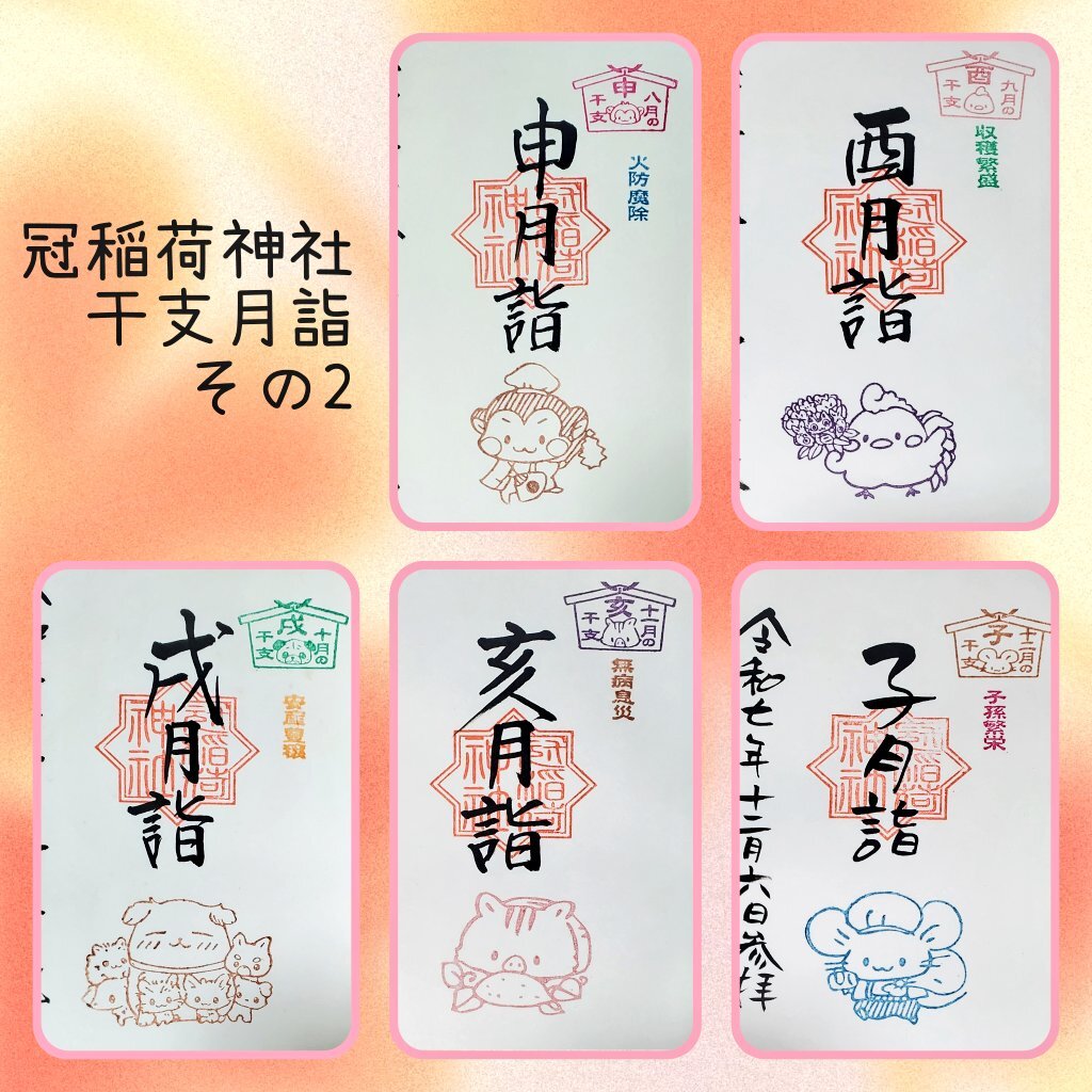 #冠稲荷神社 の記録、最後は挟み紙です。毎月可愛すぎて楽しみのひとつでした。電車で行くと駅からの徒歩も含め最短でも1時間半は掛かってしまいます。夏は原付で1時間くらい掛けて行ったのもいい思い出(笑) #御朱印 #御朱印巡り pic.x.com/P2lB0SOreM