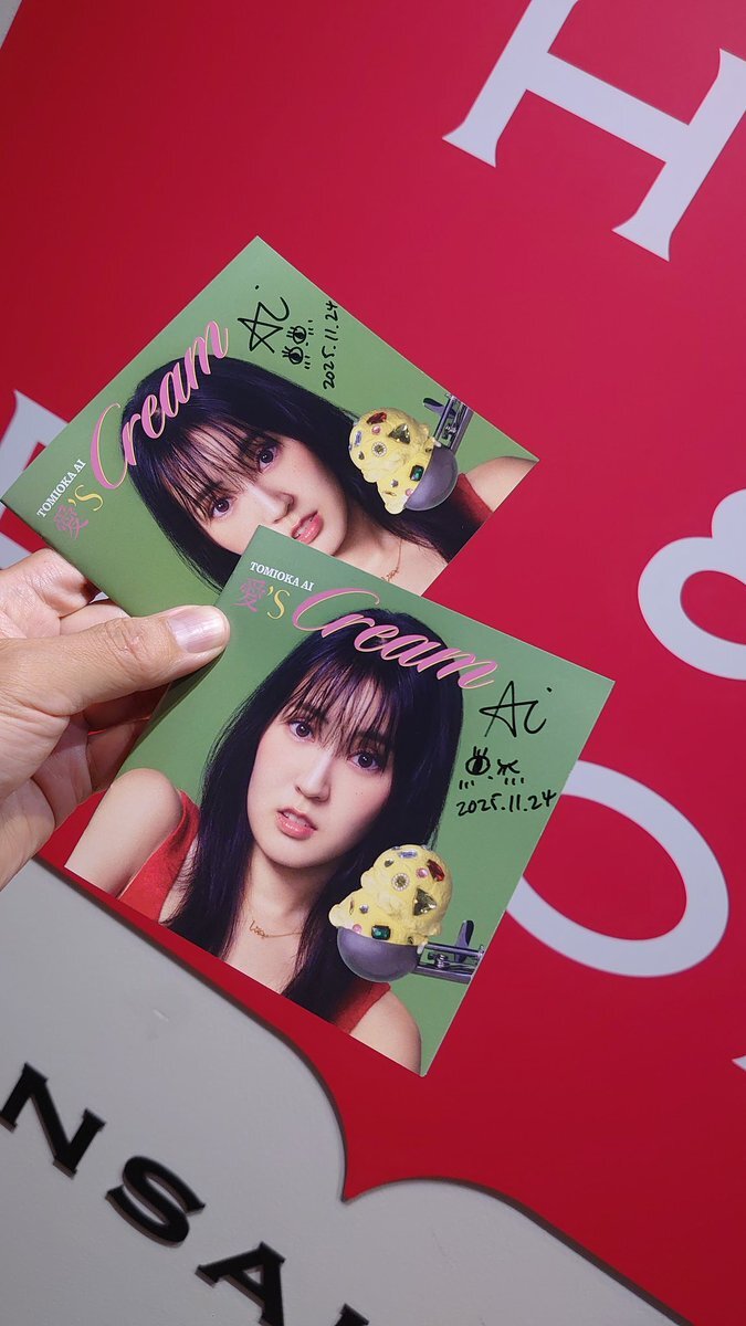 #冨岡愛】 本日は ファーストアルバム『愛’sCREAM』発売記念イベントにお越しいただきありがとうございました🎶 イベント開催記念にお写真とサインをいただきました✨ またのご来店をお待ちしております♪ #愛sCREAM pic.x.com/qF9b1sVgq8