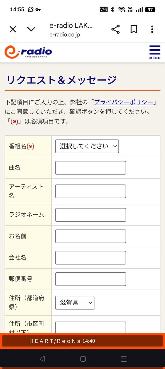FM滋賀さんのホームページからリクエスト&メッセージで出来ます。番組選べるので私はキャッチにSUGARをリクエストしました。 #龍宮城 #SHIBAI #SUGAR #冨田侑暉 pic.x.com/Tp92QMF6EL