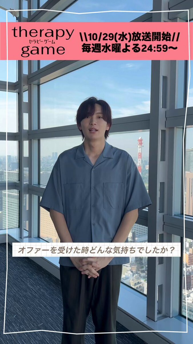 ◤ 💛❤️📷#ドラマセラピーゲーム📷💛❤️ NAOYAさんに聞いた!ドラマ出演のオファーが届いた瞬間の気持ちを直撃!◢ 📺放送日程📺 10月29日(水)24:59日本テレビにて放送スタート 主演 #NAOYA(#MAZZEL) #冨田侑暉(#龍宮城) 公式HP ntv.co.jp/therapygame/ pic.x.com/qXJrAV55Fy