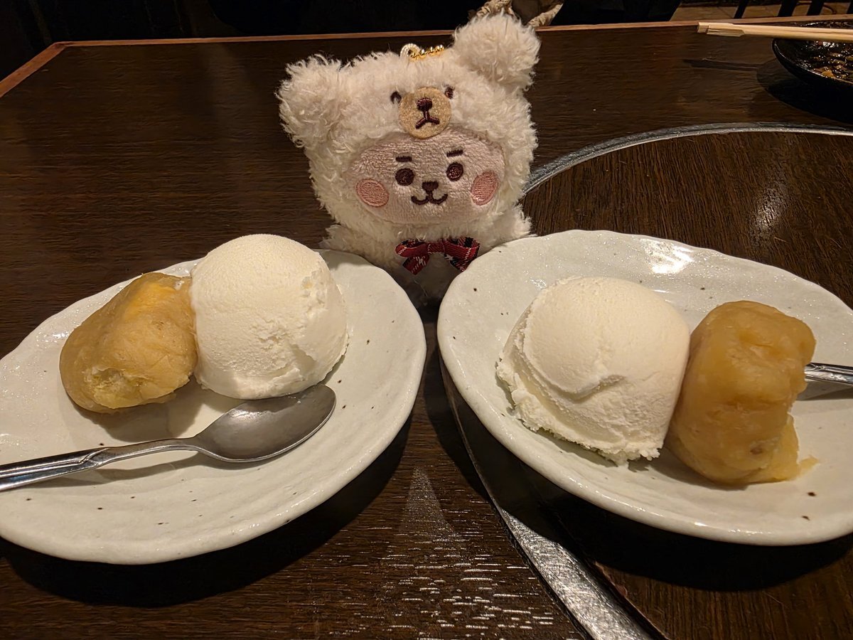 冨紗家にも初めて行きました。 めっちゃ美味しかった。 いっぱい人形並べたら 気をつけてくださいとすみません😢⤵️⤵️ お芋アイス最高でした。 #冨紗家 pic.x.com/Yv585pcduM