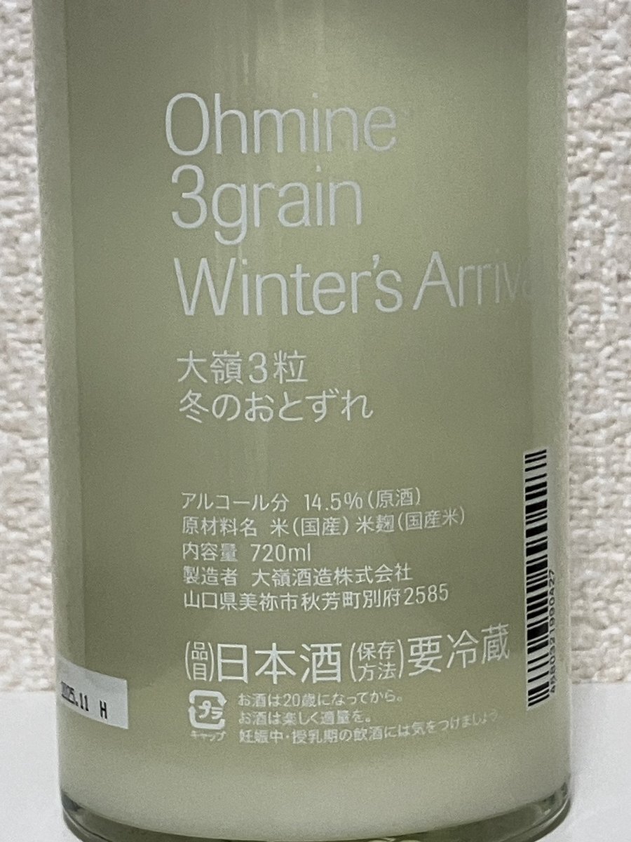 【今年も登場❄️】 山口県・大嶺酒造様 「大嶺 3粒 冬のおとずれ Ohmine 3grain」✨ やわらかな甘みと澄んだ酸が心地よい、冬の人気酒です🍶 🧊1800mlサイズ:在庫あり 🌨720mlサイズ:11月中旬発送予定 👉 saitousaketen.co.jp/view/category/… #大嶺酒造 #Ohmine #冬のおとずれ #栃木さいとう酒店 pic.x.com/Ps9Lr5K1JU