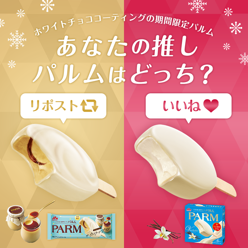 ┈┈┈┈┈┈┈┈┈┈┈┈┈⊹ 明日は #冬アイスの日🍨 あなたの推しパルムはどっち? ⊹┈┈┈┈┈┈┈┈┈┈┈┈┈ 💛ほろ苦いカラメルソース入り 【#ザ・カスタードプリン】⇒リポスト🔁 ❤️バニラのコク深い味わい 【#パルムバニラバー】⇒いいね❤️ リポスト or いいねで教えてください♪ pic.x.com/wCq2tgFpQ6