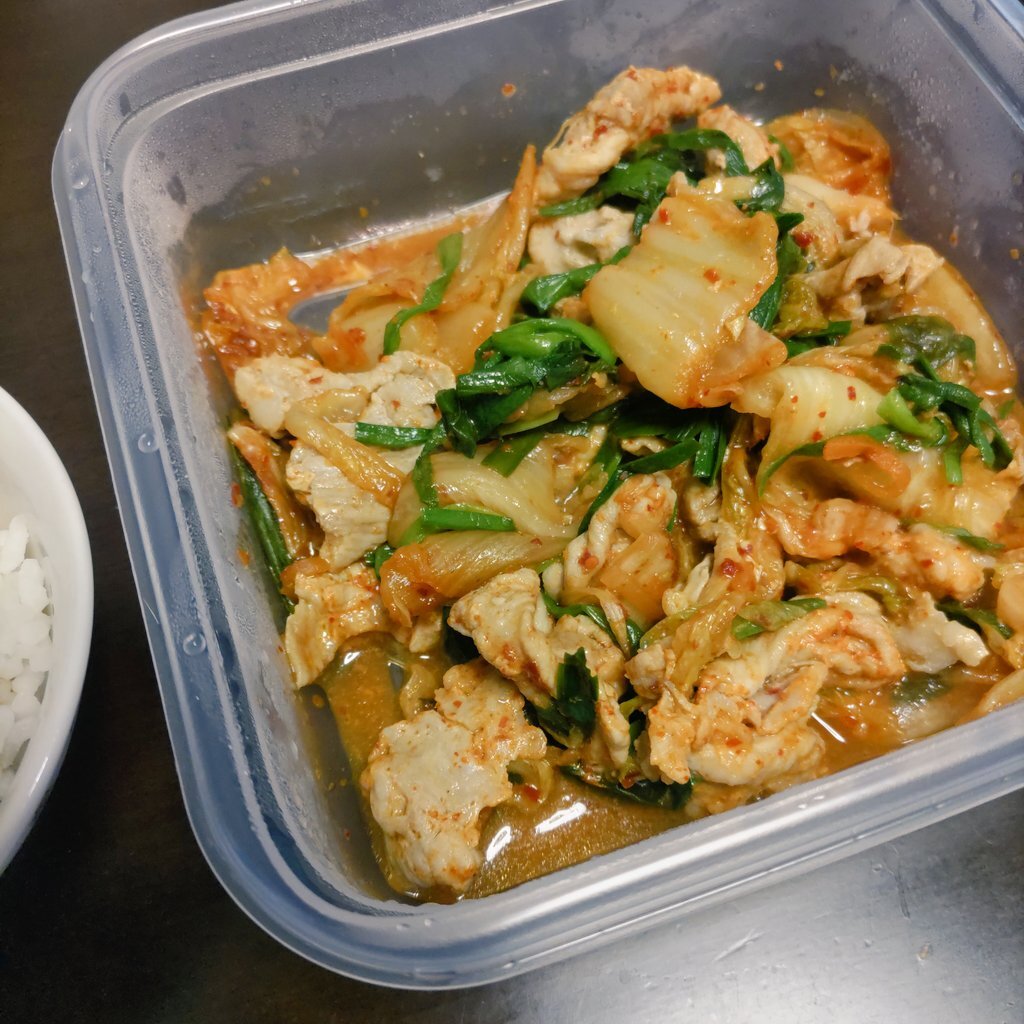 #冷凍弁当 が残り3食だけど時間が厳しい、と思っていたら材料を合わせて冷凍、解凍で調理終了というレシピ本を買っていたので豚キムチを仕込んでみました。下には生肉が入っている。 というか、冷凍弁当作り始めて一年が経ちました。 #在宅ワークの昼食 pic.x.com/PtrNL6sAQQ