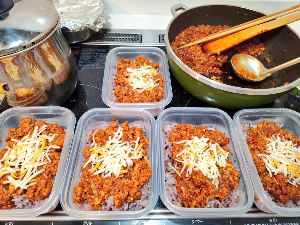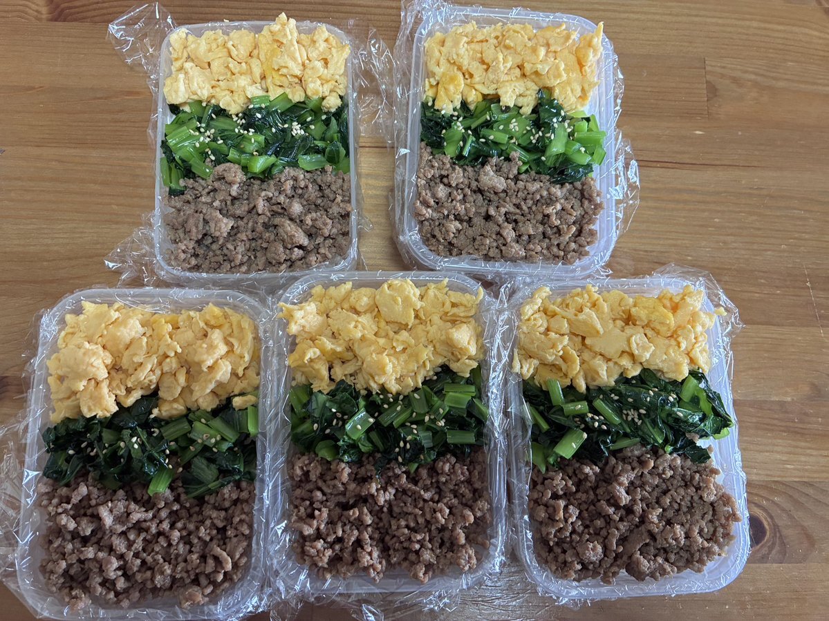 来週の弁当完成🤗 今回はそぼろ弁当 1食128円也。👏 #冷凍弁当 pic.x.com/CaUS1EgMTW