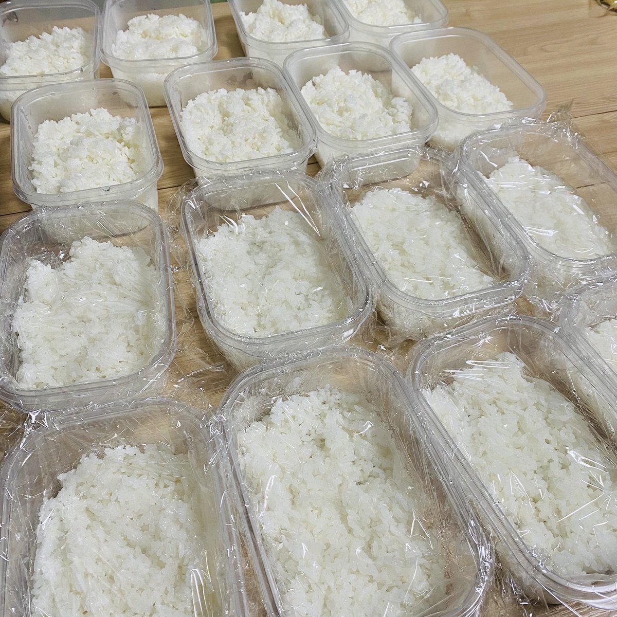 #冷凍弁当 等用に お米四合炊いて ラップで包みました