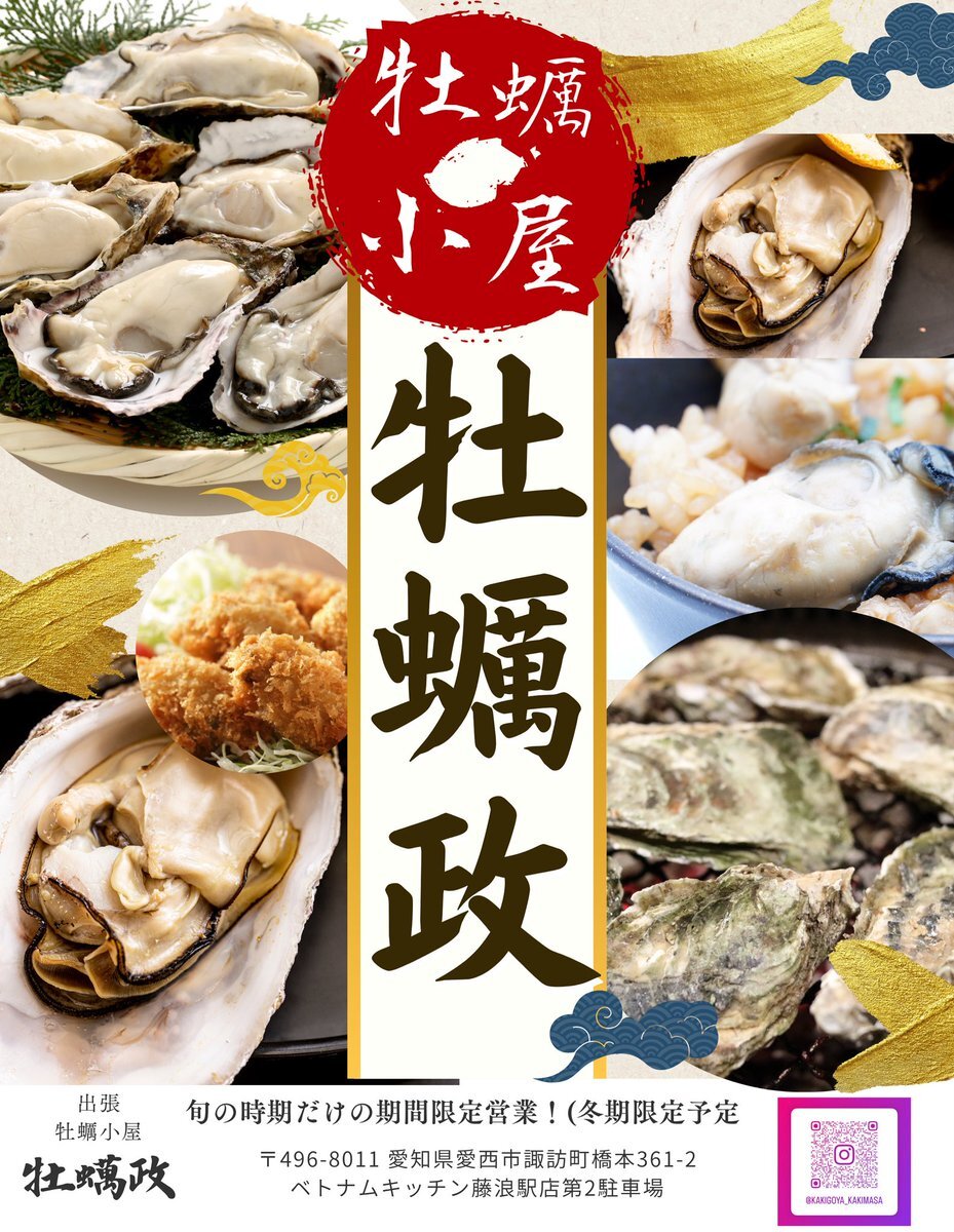 11月15日11:00オープン決定! 赤穂の出張牡蠣小屋「牡蠣政」 皆さん来て下さいね。 #赤穂の牡蠣料理 #出張牡蠣小屋の牡蠣政 #愛知県牡蠣料理 #名古屋牡蠣料理 #愛西市牡蠣料理 #津島市牡蠣料理 #Oyster #CácMónHàu #kakigoya_kakimasa pic.x.com/vjHjcftq4j