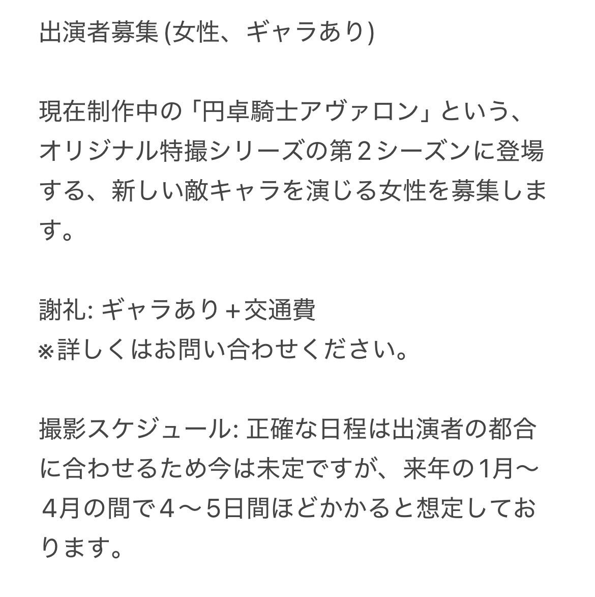 #円卓騎士アヴァロン シリーズの #出演者 を #募集 しています。 役:敵幹部(台詞あり、アクション必要) 条件: - 18歳以上の健康な女性 - 日本語が話せる、読める - アクションできる方 詳細は画像よりご確認をお願い致します。 締め切り: 12月5日 ご興味ある方は、お気軽にDMにてご連絡ください。 pic.x.com/az0TyEUbRS