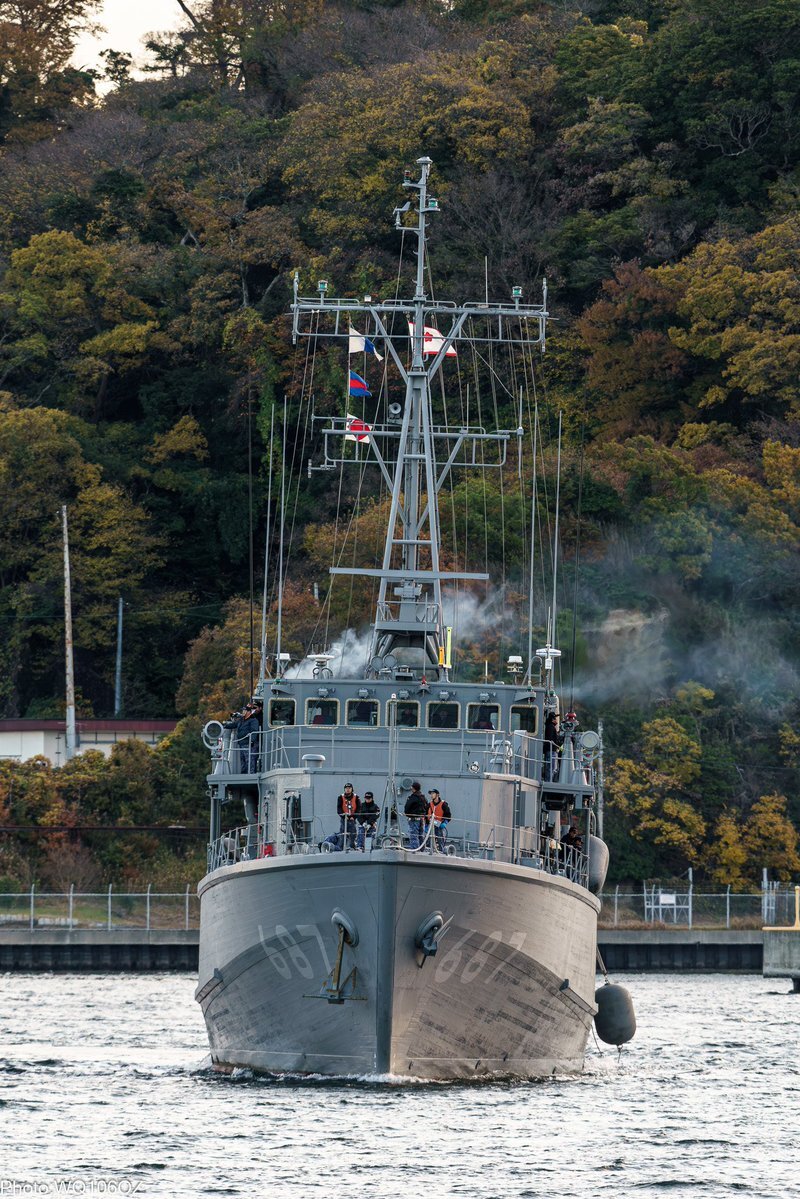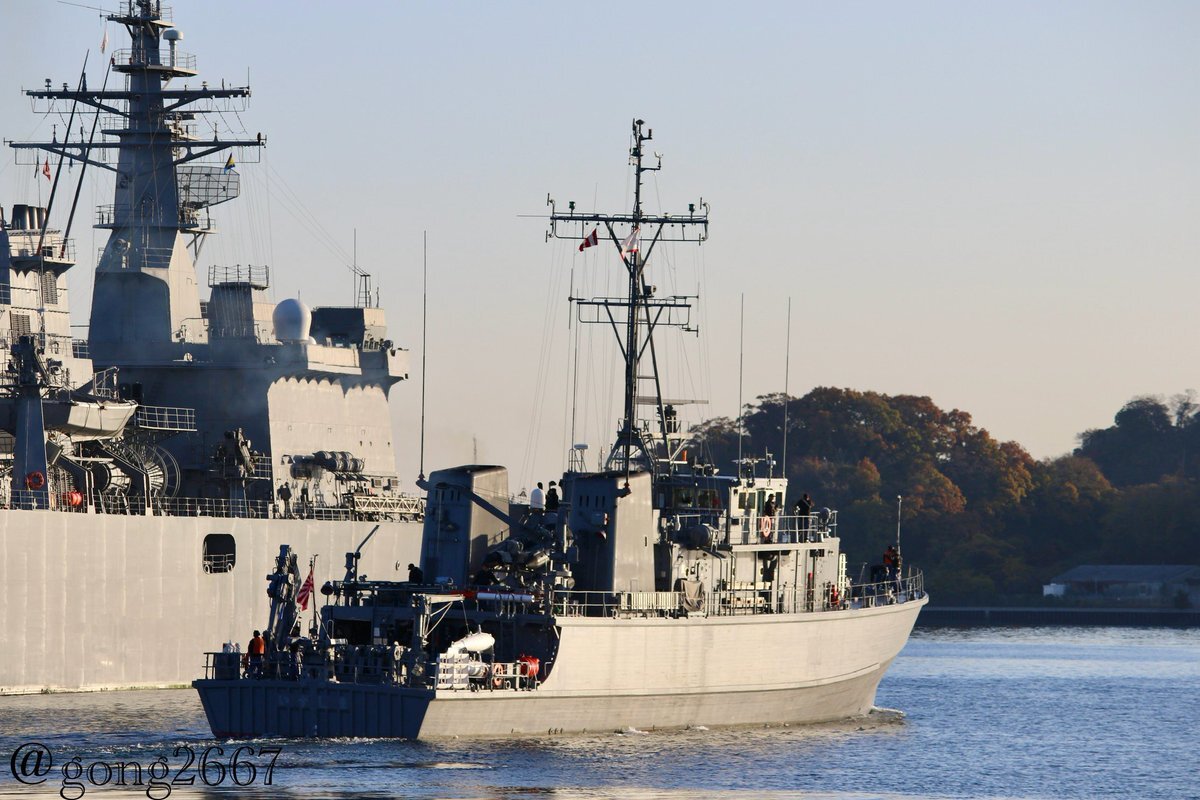日向灘から函館への帰途、補給のため横須賀船越地区に寄港する すがしま型掃海艇7番艦いずしま(JS Iwushima, MSC-687) #海上自衛隊 #横須賀 #横須賀地方隊 #函館基地隊 pic.x.com/xb30TCTKXX