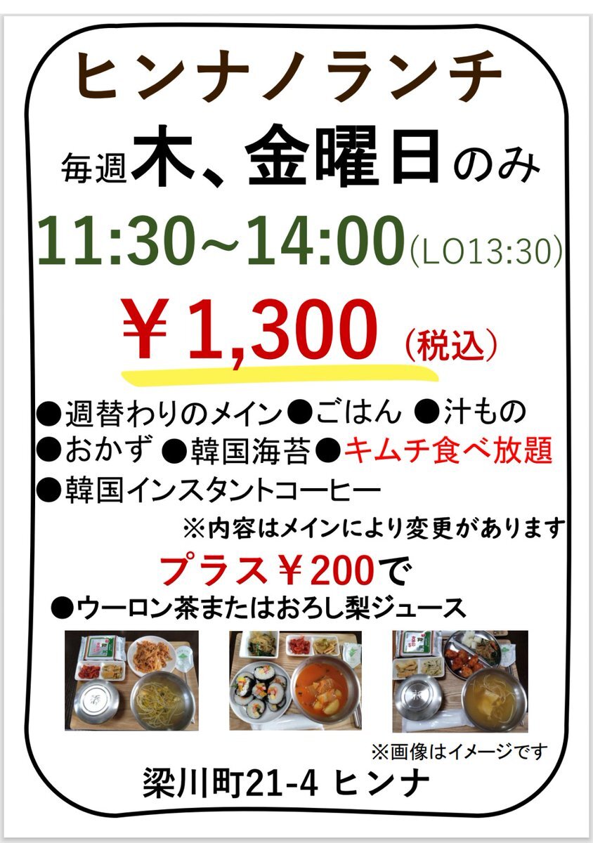 11/12(水)号 お世話になっております、函館研究所のGM澤田です。 ◯ヒンナノランチ、13日(木)より!メニューはスンドゥブチゲ(순두부찌개)です!駐車場あります! ◯15日(土)は中島れんばいふれあいセンターに出店いたします! よろしくお願いいたします #函館 #函館研究所 #ヒンナ pic.x.com/oszUEfH2vo