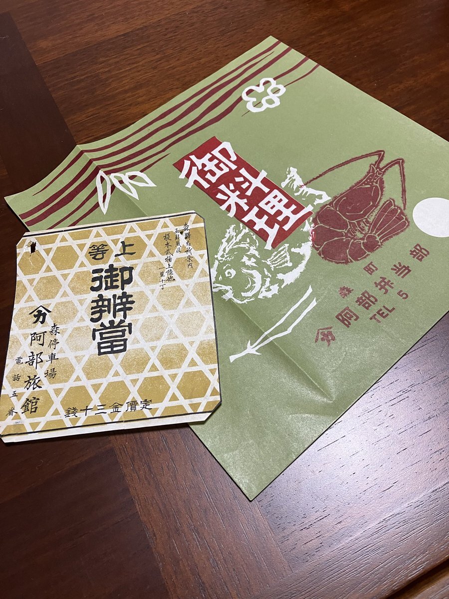 #いかめし で有名な #森駅#駅弁 の包み紙です。 現在は #阿部商店 さんですが、 当時は阿部旅館と阿部弁当部の 名義で販売されていたのですね。 #函館 #函館の歴史 #函館美術 #北海道 #鉄道 #函館駅 #函館本線 pic.x.com/rZity8CBON