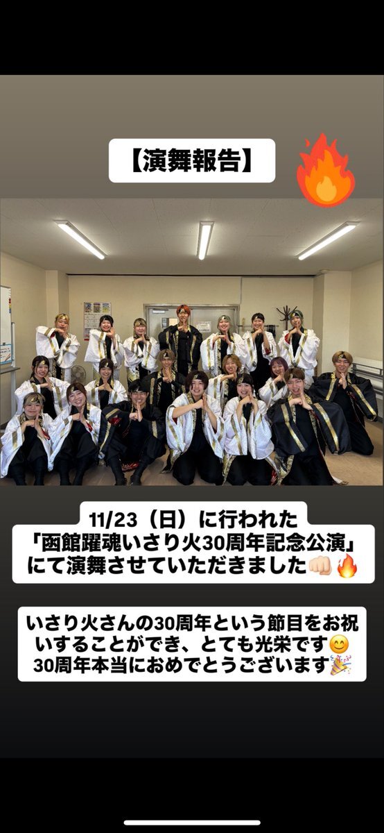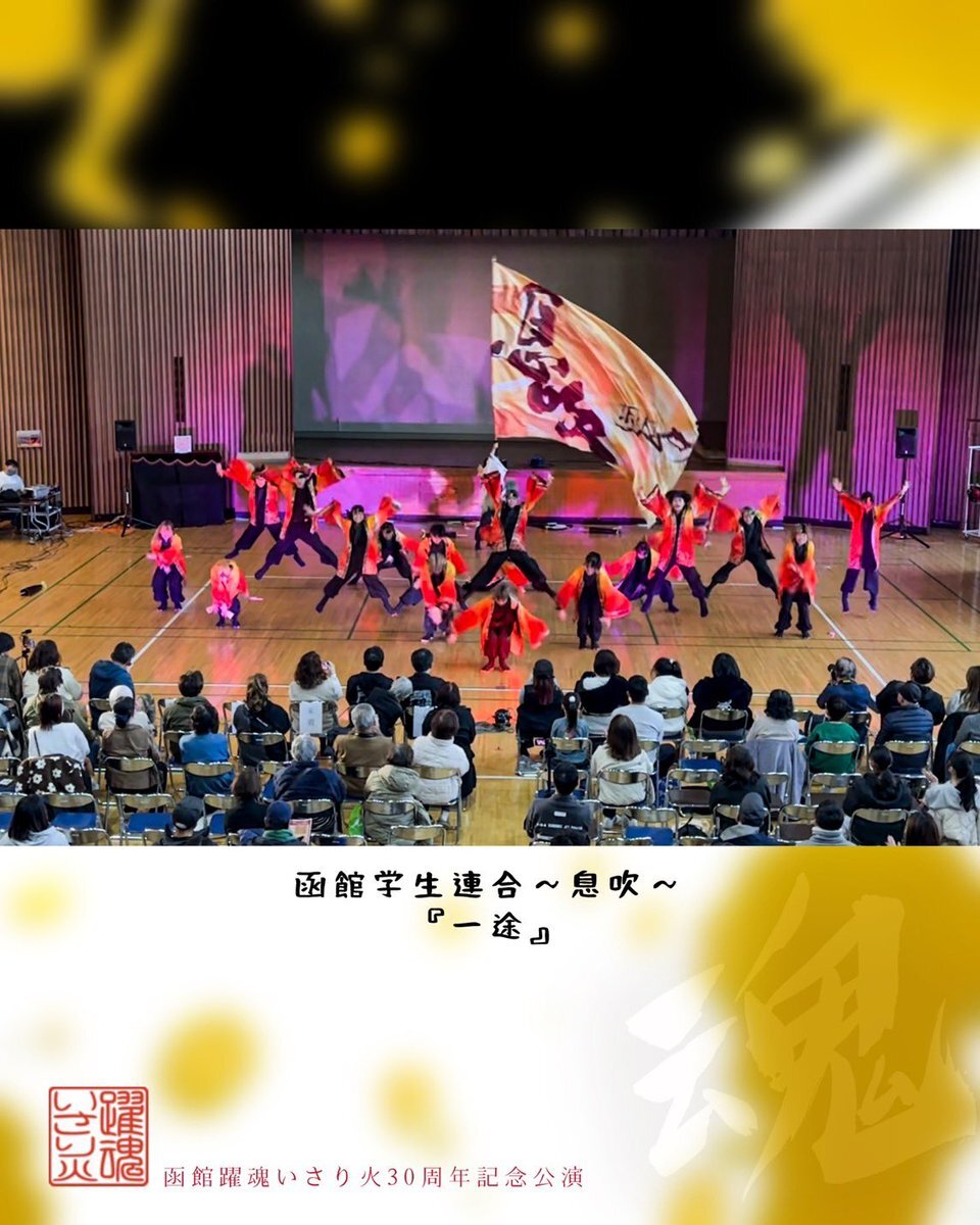 【演舞報告】 11/23(日)に行われた「函館躍魂いさり火30周年記念公演」にて演舞させていただきました👊🏻🔥 いさり火さんの30周年という節目をお祝いすることができ、とても光栄です😊 30周年本当におめでとうございます🎉 #函館学生連合息吹 #息吹 #よさこい #函館躍魂いさり火30周年記念公演 pic.x.com/VFJr2Veeas