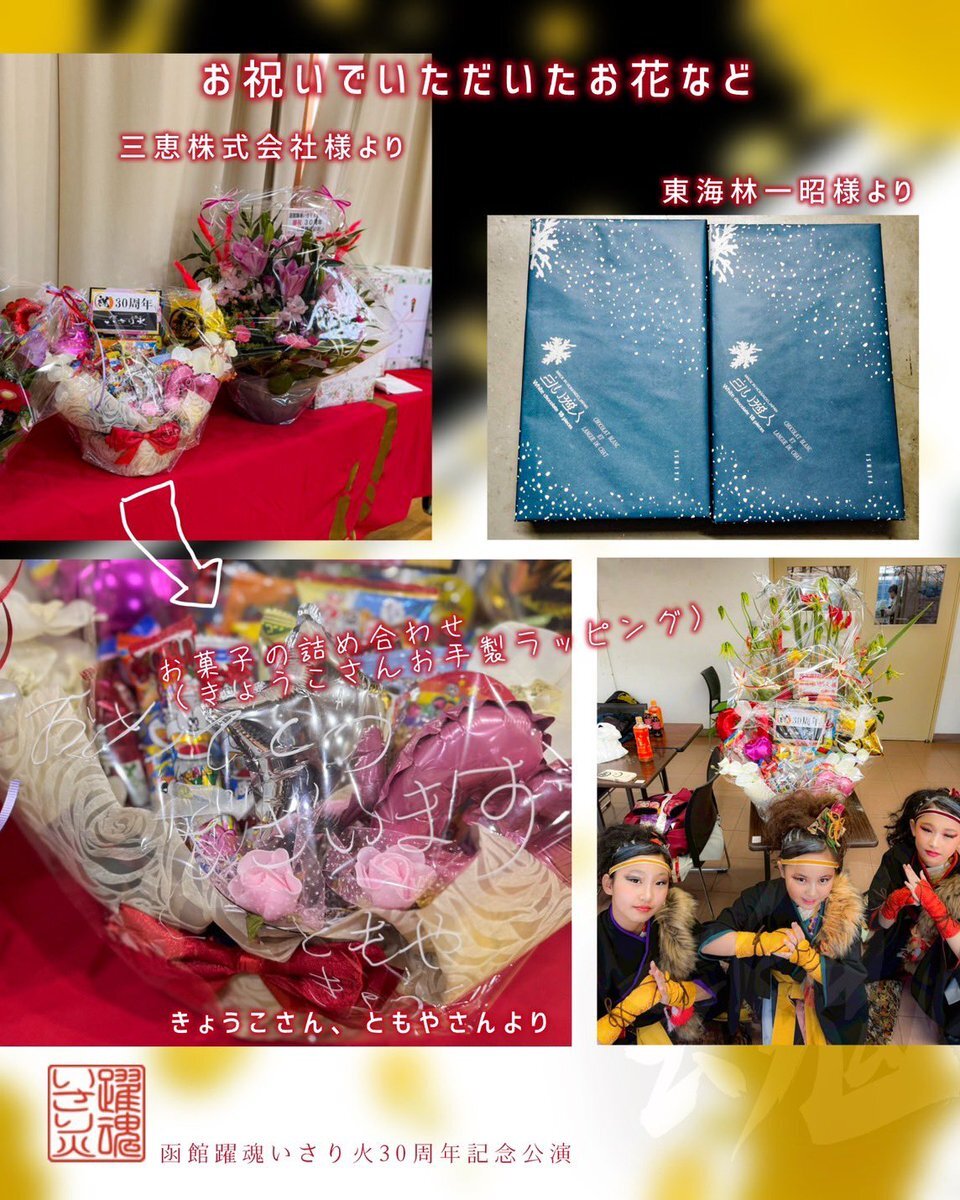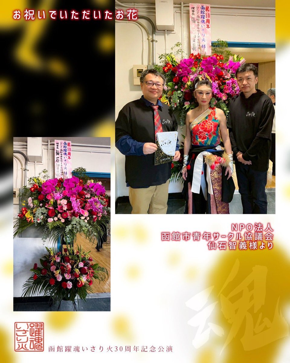 今回も函館躍魂いさり火30周年記念公演を振り返ります どうぞご覧ください❷ お祝いでいただいたお花などご紹介したいと思います ①天希道弘様 #函館躍魂いさり火30周年記念公演 #函館躍魂いさり火 pic.x.com/NW0UShIpYa