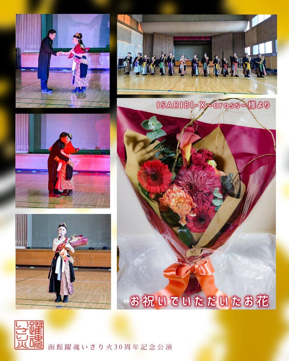 ⑬花束進呈〜ご挨拶 ISARIBI-X~cross~さんより いただいたお写真掲載しています ありがとうございました #函館躍魂いさり火 #函館躍魂いさり火30周年記念公演 pic.x.com/uXYmqezvpB