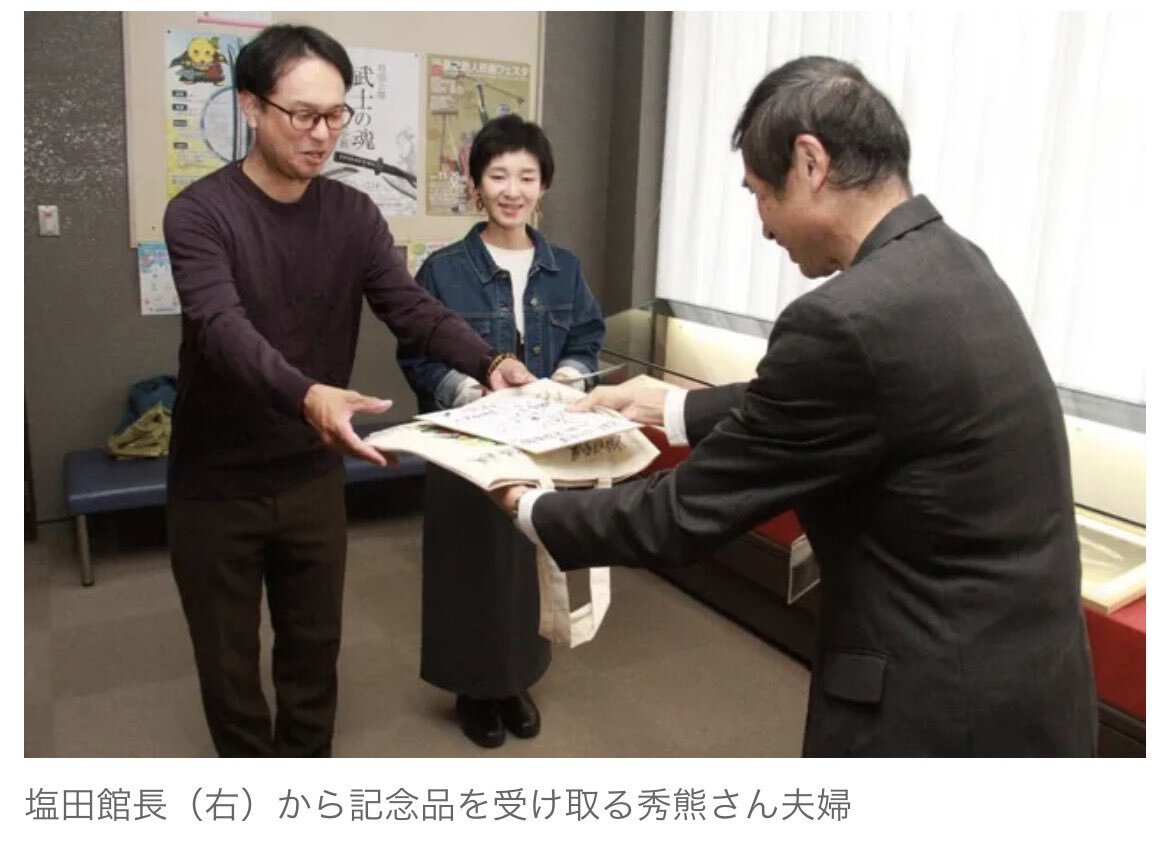 ㊗️入館者2万人🎊 昨日、備前長船刀剣博物館の特別展「刀剣は人を救う~ふなっしーの刀剣展~」の入館者が2万人を超えました。 記念セレモニーでは、2万人目となった来館者の方へオリジナルグッズなどをプレゼントしました。 後期展は、残り5日(11/24(月・祝)まで)。 ぜひこの機会にご来館ください。