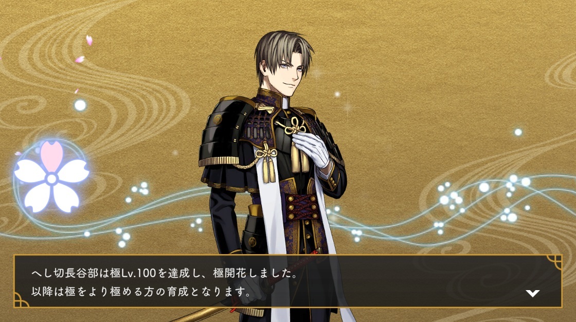 根兵糖を使って、へし切長谷部を最初の極開花させました さあ、ここからが地獄の始まりだ 長谷部がカンストするのは何年後だ!?ww 現在、お船がイベにむけてメンテが始まったので、その間に刀剣男士をレベリング中 次に極開花させるのはいつだろう… #刀剣乱舞好きと繋がりたい #刀剣乱舞 #とうらぶ pic.x.com/4PX478cJLl