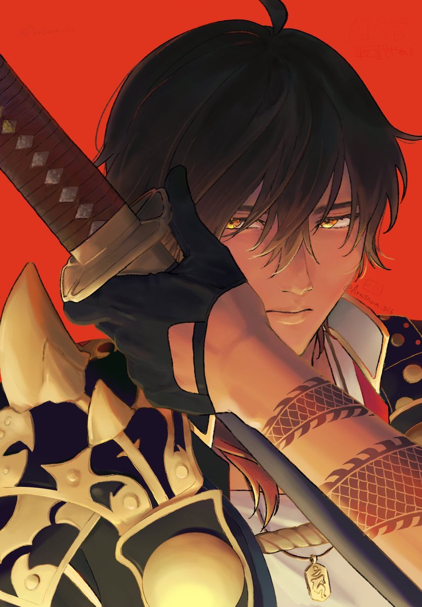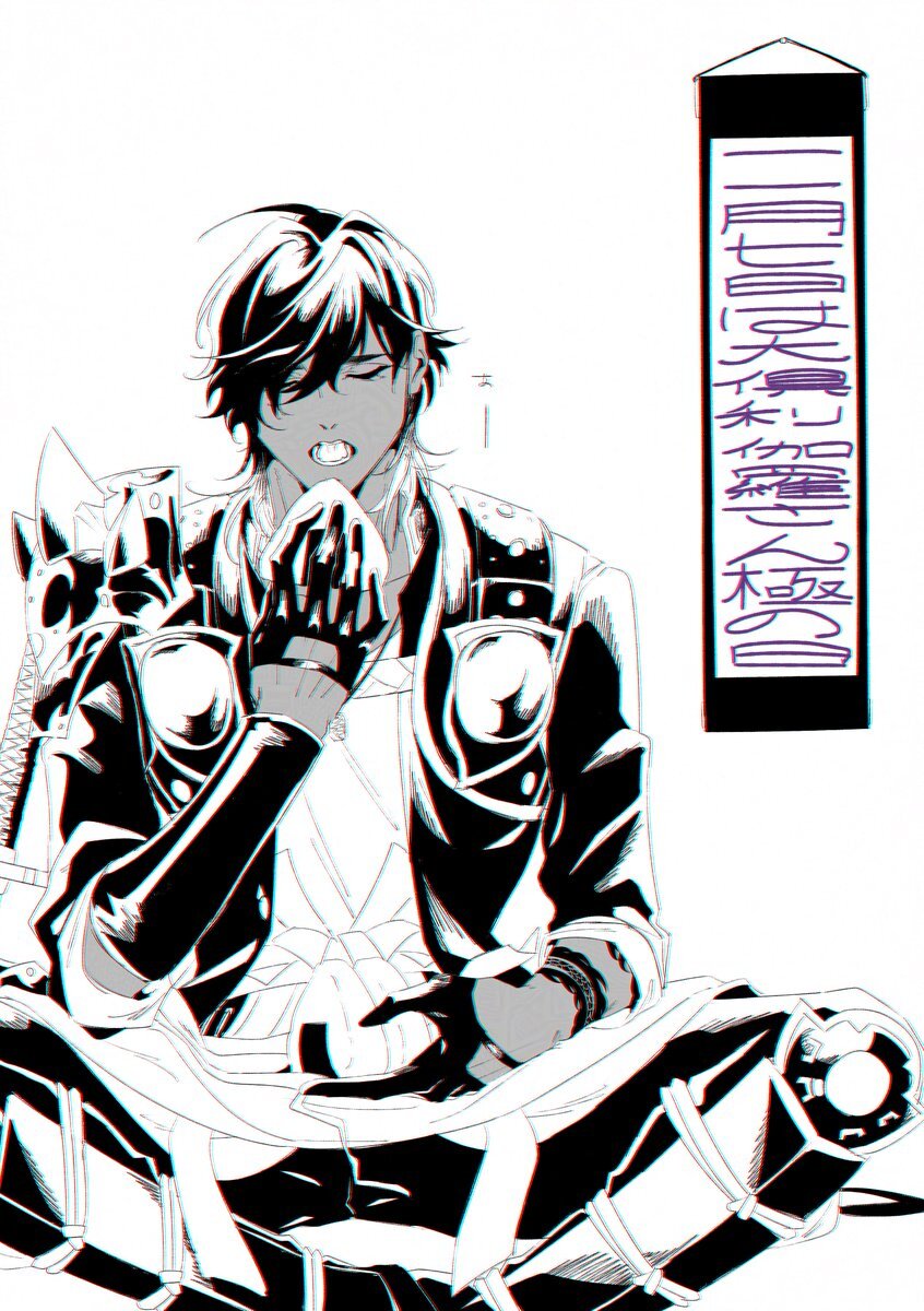 #刀帳no117で11月7日は大倶利伽羅極の日 続いておめでとうございます!!!!!!!!!!!!!!!!! 🍙 (ご飯食べる時は右腕の装甲外したりするのかなと言う想像) pic.x.com/Ck8mg68fuQ