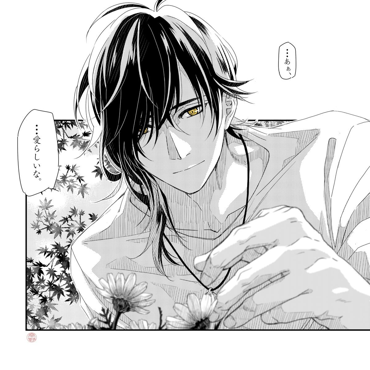 唐突に始まる1コマシリーズ 5頁目 遠征先の野の花が気に入ったご様子。 過去の創作にいいねやRPありがとうございます🙏 #刀帳no116で11月6日は大倶利伽羅の日 #刀帳no117で11月7日は大倶利伽羅極の日 pic.x.com/19QHHaf2DK