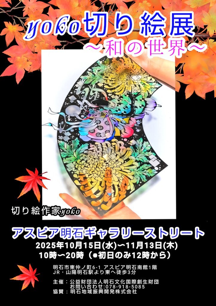 お知らせ 今月15日〜11/13まで個展を開催します🍁 今回は和の作品のみです 勿論新作もありますyo! 是非覗いて見て下さいね! 場所:アスピア明石1階ギャラリーストリート 時間:10時〜20時(初日は搬入が終わり次第) #明石文化国際創生財団 #10月になったのでフォロワーさんに自己紹介しようぜ #切り絵