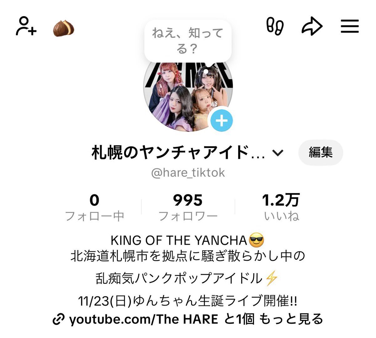 ☀️TikTokをフォローしてくれ☀️ #切実 . 毎日投稿してて偉いしあと5人で1000人なのでフォローよろしくお願いします🙇♀️ . tiktok.com/@hare_tiktok?_… . #キングオブザ割と拘ったライブ映像 #左上の栗のマーク気になる pic.x.com/SM8Hpqcsn2