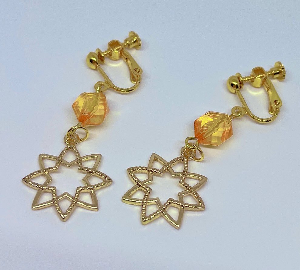#初星学園手芸部 千奈ちゃんのSTEP3のイヤリング作ってみました🙌🏻🙌🏻 この千奈ちゃんの八芒星チャームどこに売ってんですか(((((( お衣装とか実装されてから改めてビーズとか揃えたい所存🙌🏻 山吹色のビーズ探しとかんとなぁ🤔🧡 pic.x.com/5a0RNjAM2H
