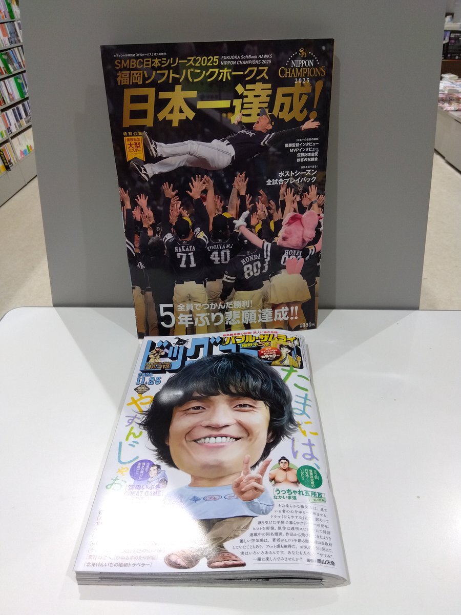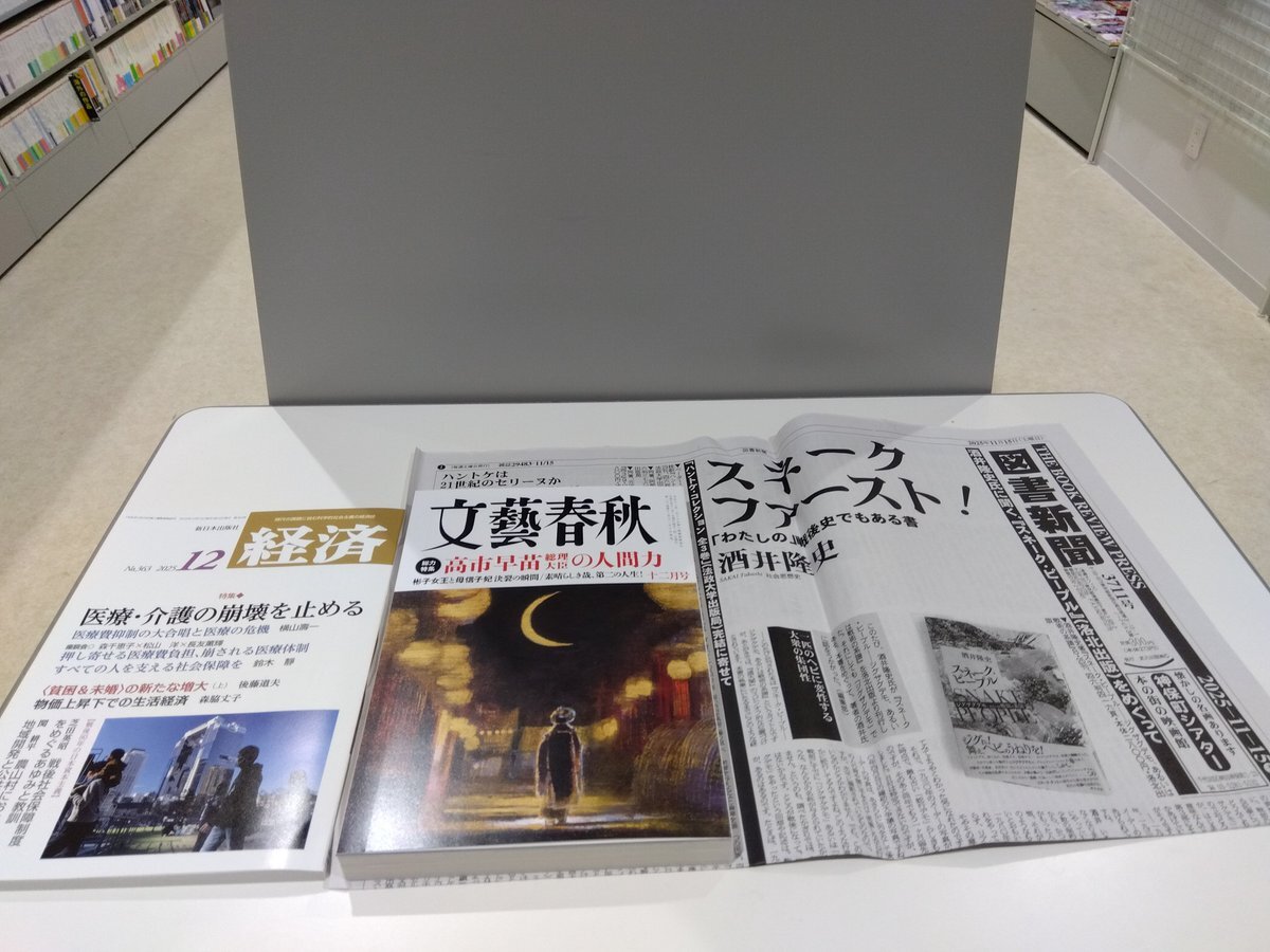 今週は火曜日の配達休み返上!? 火曜日発売の雑誌 #図書新聞 日本シリーズ制覇記念の #月刊ホークス増刊号 新総理特集?の #文藝春秋 #別冊暮しの手帖 など、本日入荷の主な雑誌です pic.x.com/qs6Szu3Met
