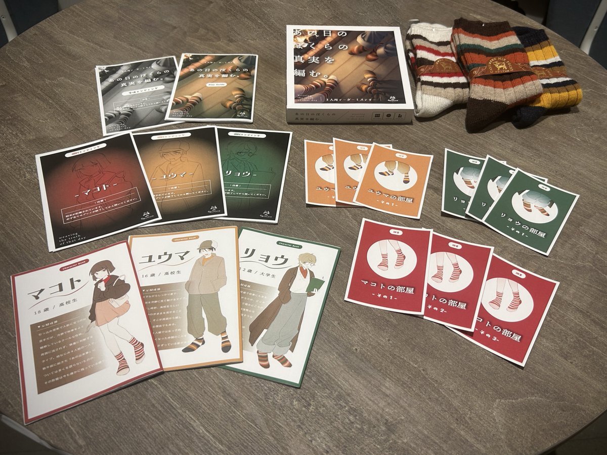 〈 あの日の彼女と向き合うまで、ぼくらはここから出られない── 〉 🧦靴下×謎解き🔎の新感覚 #マーダーミステリー 「 あの日のぼくらの真実を編む。 」 イラスト/デザイン担当しています 只今鋭意制作中!! 完成版をお楽しみに⟡.· #graphicdesign #illustration #ボードゲーム #制作記録 pic.x.com/UnnxO3Wvl7