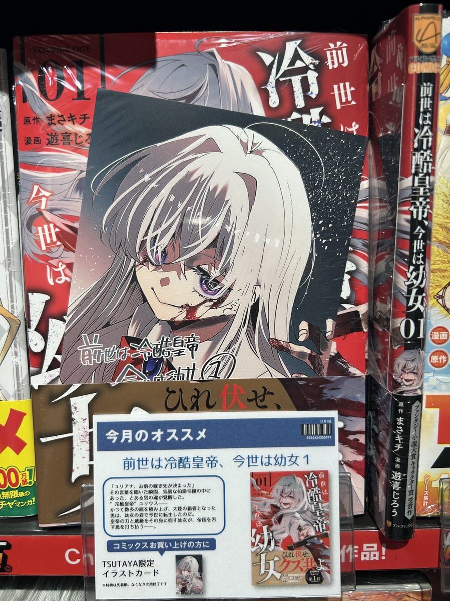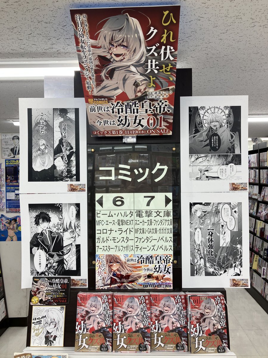 【注目新刊入荷】アルファポリスコミックスさん・遊喜じろう先生・まさキチ先生の「前世は冷酷皇帝、今世は幼女 第1巻」好評販売中!只今、特典「ペーパー」と「イラストカード」を封入!なおご厚意により、サイン色紙と複製原画を展示中です!(あ) #前世は冷酷皇帝今世は幼女 #遊喜じろう #まさキチ pic.x.com/pU7i1W8e0g