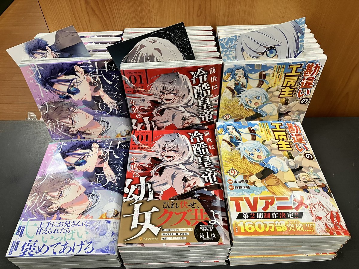 【新刊入荷情報📢】 本日発売の青年コミックスは、 #勘違いの工房主 9巻 #前世は冷酷皇帝今世は幼女 1巻 ※特典付き商品は無くなり次第終了となります。ご了承下さい。 ポイントが5倍貯まる‼️定期購読受付中📕 pic.x.com/w00L9ZOr57