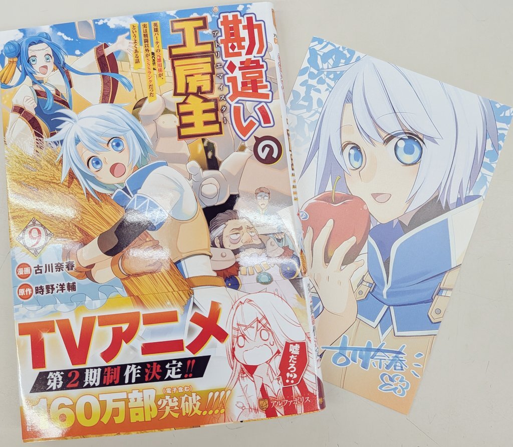 【BOOK入荷情報】 📢本日発売‼️ 『勘違いの工房主』 9 『前世は冷酷皇帝、今世は幼女』 1 TSUTAYA限定イラストカードプレゼント🎁 ※無くなり次第終了 本日もご来店お待ちしてます❄️ #勘違いの工房主 #前世は冷酷皇帝今世は幼女 #アルファポリス #TSUTAYAあべの橋 pic.x.com/1EnB0a5MlL