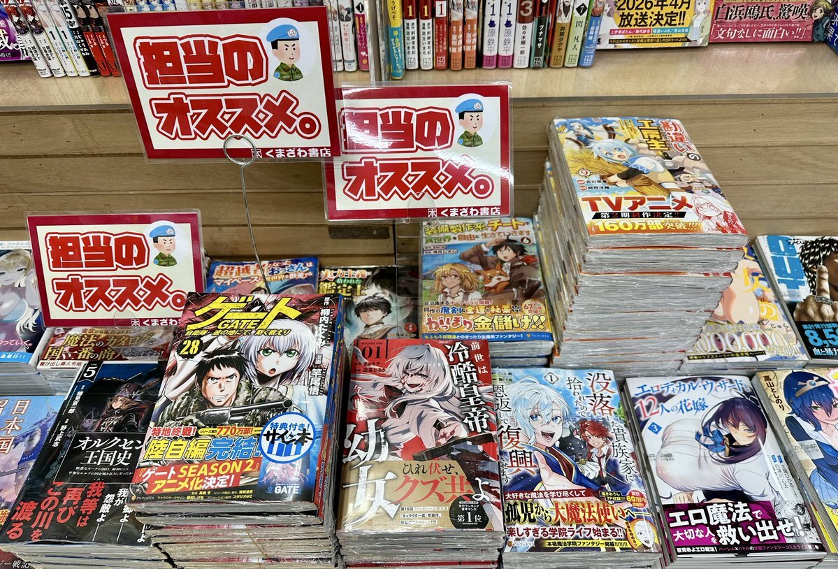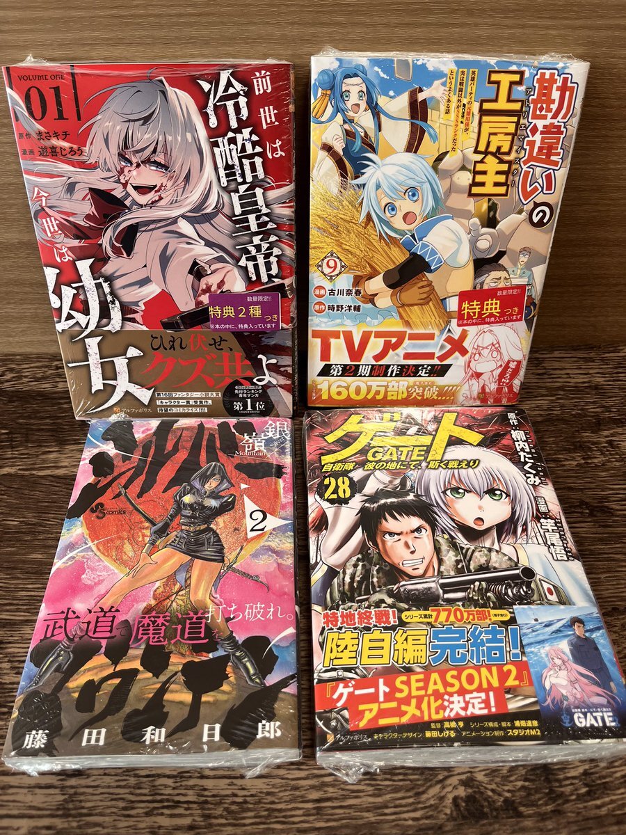 ⭐️コミック新刊情報🎶 / 📢本日入荷のオススメタイトルのご案内 #前世は冷酷皇帝今世は幼女 1巻 #ゲート 28巻 #シルバーマウンテン 2巻 #勘違いの工房主 9巻 \ その他多数のコミック、入荷しております。 是非2階コミック売場をご覧ください😌 pic.x.com/KHYhAOEIPJ