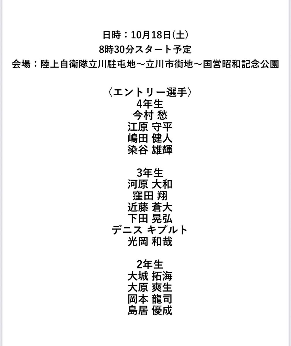 【第102回東京箱根間往復大学駅伝競走予選会エントリーメンバー】 当日は14名の中から12名が出走いたします。 限られた時間の中で最高の状態へ仕上げていきます! 応援よろしくお願いいたします! #日本薬科大学陸上部 #前代未聞の逆転集団 #箱根駅伝予選会 pic.x.com/0BSmmjbBXH