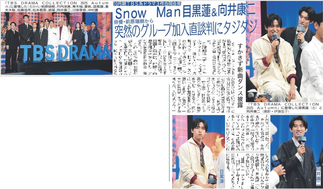目黒蓮&向井康二、俳優からの質問「どうしたら僕はSnow Manに入れる?」にきっぱり回答「9人でもう…」【写真9枚】 #TBSドラコレ2025秋 #SnowMan #向井康二 #目黒蓮 #前原瑞樹 news.mynavi.jp/article/202510…