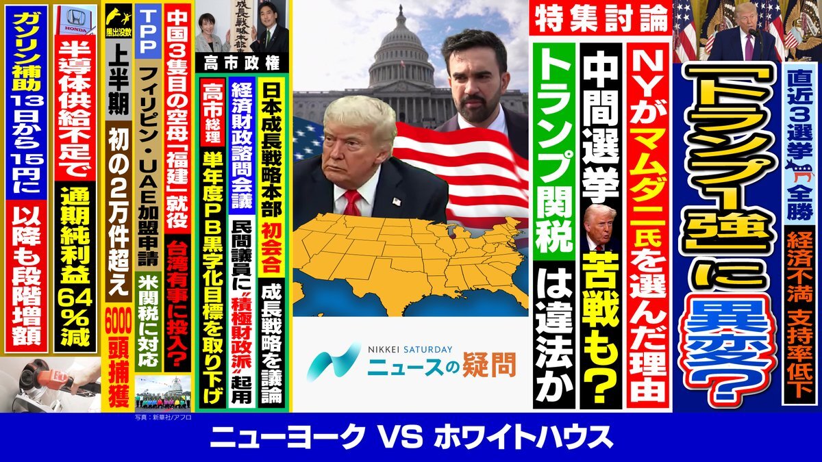 【日経サタデー ニュースの疑問】 NY市長選の民主勝利は「反トランプ」の民意?ワシントンから生中継 アメリカ連邦議会の中間選挙まで1年を切りました。前哨戦と位置づけら…… #BSテレ東 #日経サタデー #山川龍雄 #水原恵理 #前嶋和弘 #今村卓 #ジョセフ・クラフト #TVer tvtokyo.tv/481MNjj