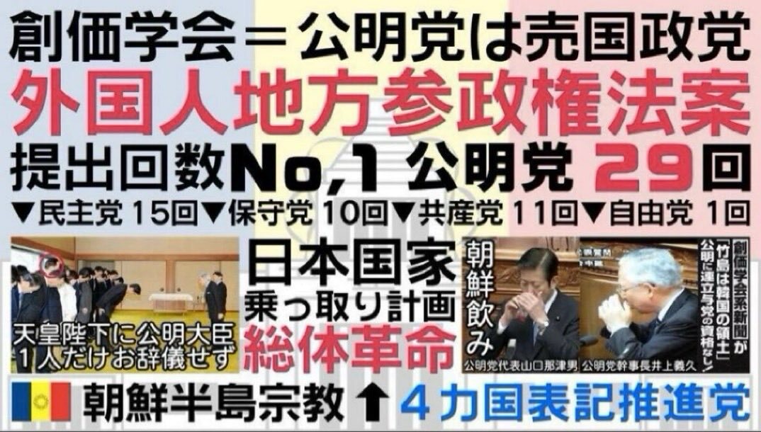 公明党は外国人参政権推進ですよ。それでいいんですか?いまこそ連立解消しましょう