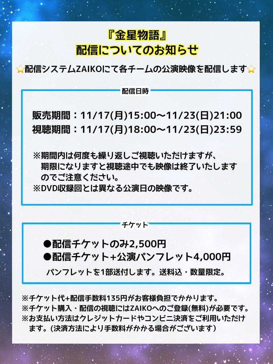 / #金星物語 🚀🌏⭐️ 配信公演決定のお知らせ \ 期間内は何度も繰り返しご視聴いただけます✨️ ◆販売期間:11/23(日)21:00まで ◆視聴期間:11/17(月)18:00~11/23(日)23:59まで 🎫配信チケットご購入はこちら bohsozoku.zaiko.io/item/377146 ▶️登録・購入・視聴方法のご案内 youtu.be/BwDzQxC8vlE?si…