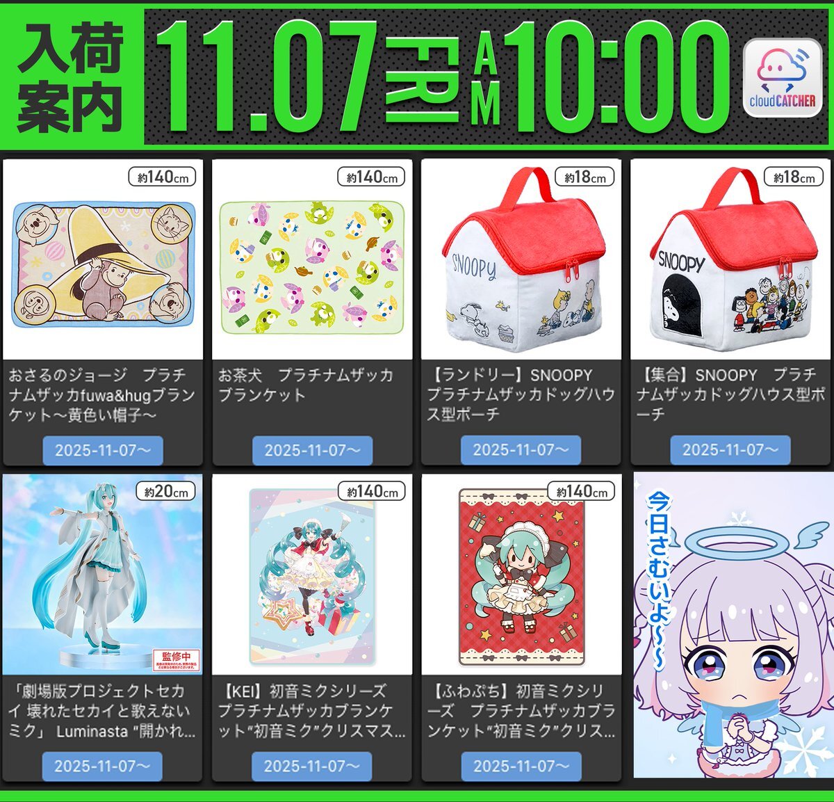 ――――💛🌿10時投入START🐶💙―――― <11/7㊎> ✅「#劇場版プロジェクトセカイ 壊れたセカイと歌えないミク」 Luminasta “開かれた窓のセカイの #初音ミク” ✅#初音ミク シリーズ プラチナムザッカブランケット“初音ミク”クリスマス2025 ✅#お茶犬 プラチナムザッカブランケット ✅#SNOOPY pic.x.com/sTWnBANTi6