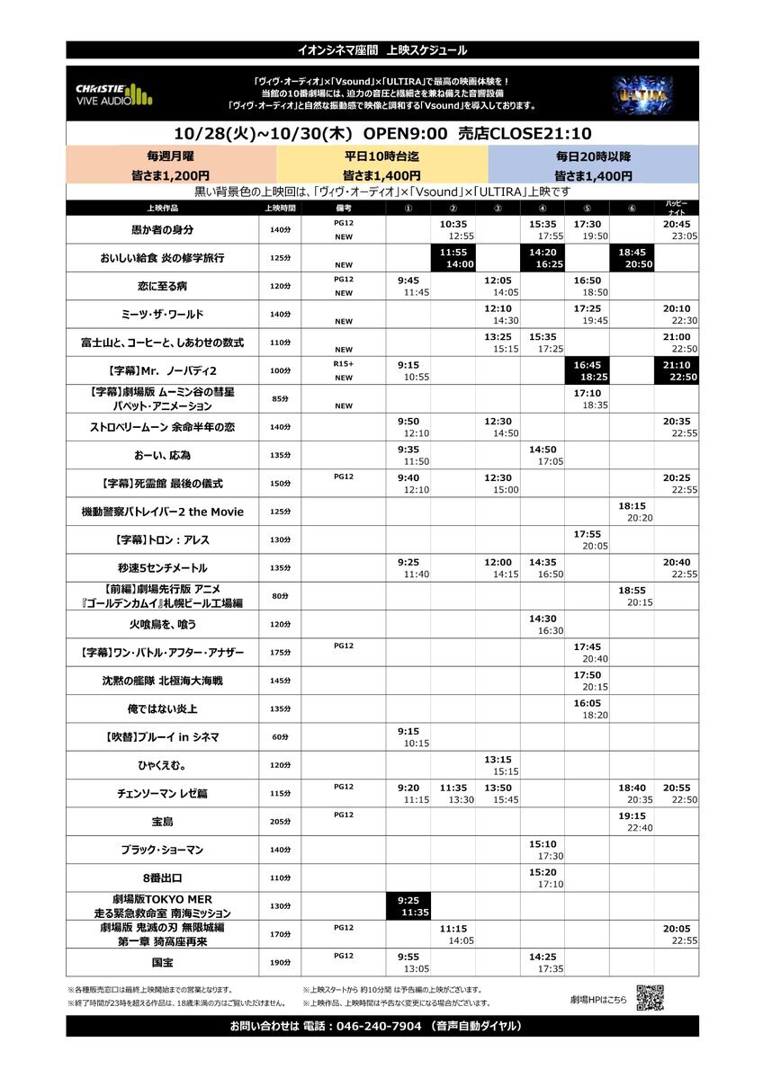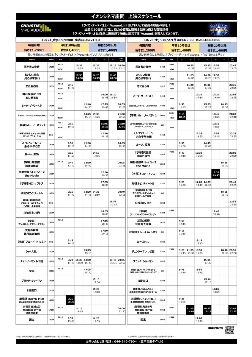 【10/24(金)~10/30(木)上映スケジュール】 ⏰営業時間:朝9:00オープン🎬今週末も話題作がいっぱい!🆕 #おしい給食 炎の修学旅行 #愚か者の身分 #富士山とコーヒーと幸せの数式 #恋に至る病 #Mrノーバディ2 #ミーツザワールド #劇場版ムーミン谷の彗星 パペット・アニメーション 🚙駐車場無料 pic.x.com/j70N2nrPlL